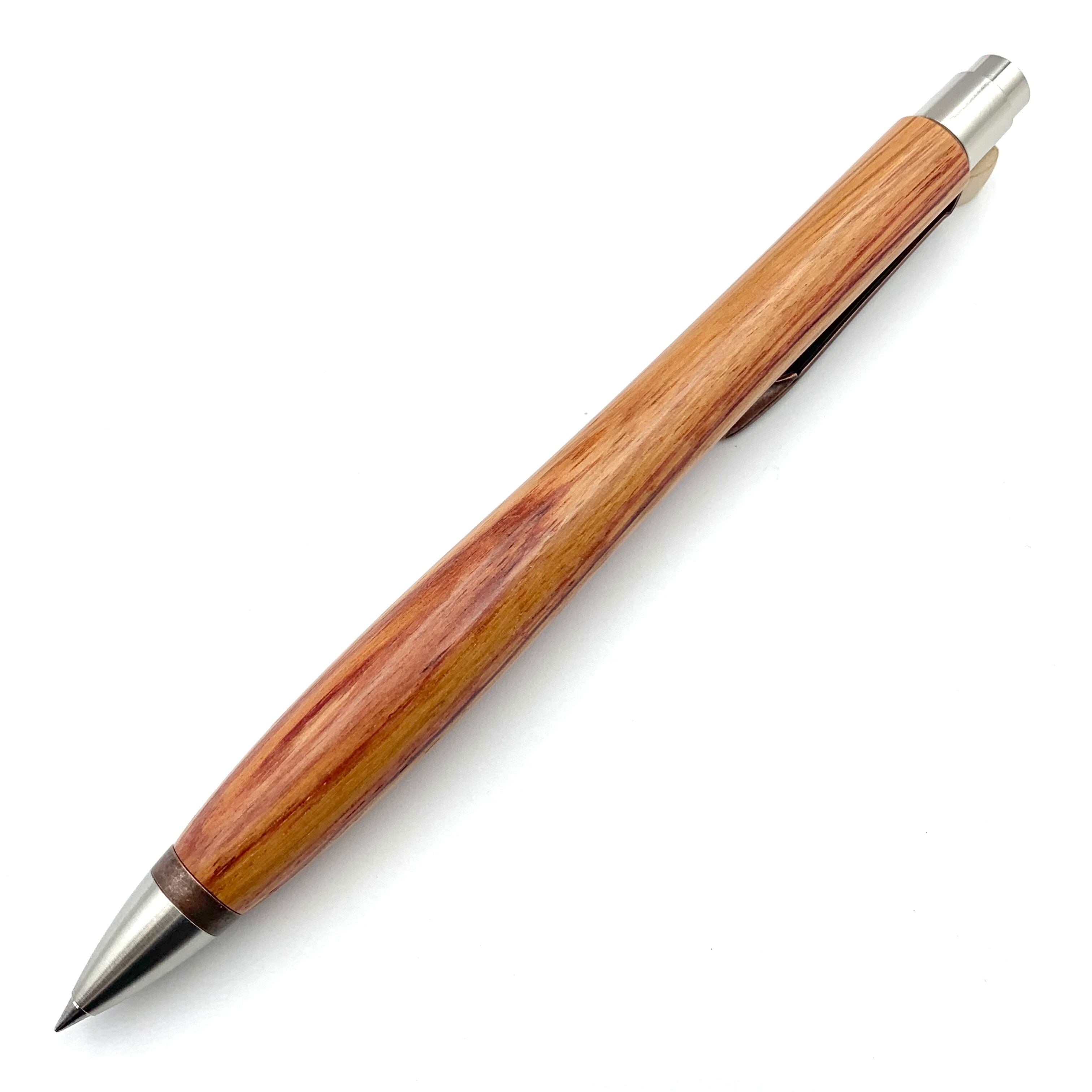 ボールペンのノックシステムは、ドイツ最高のクリックメカニズムを採用してあります。このメカニズムはユニークな機構のため、クリックしたときのカチカチ音が静かで、どんな場所でも気兼ねなく使うことができます。滑らかに動くこのプッシュ感覚を一度味わうと他には戻れなくなってしまうほどの魅力があります。 100分の1単位の加工精度で削り出されたペン先は、軸ブレも全くありません。