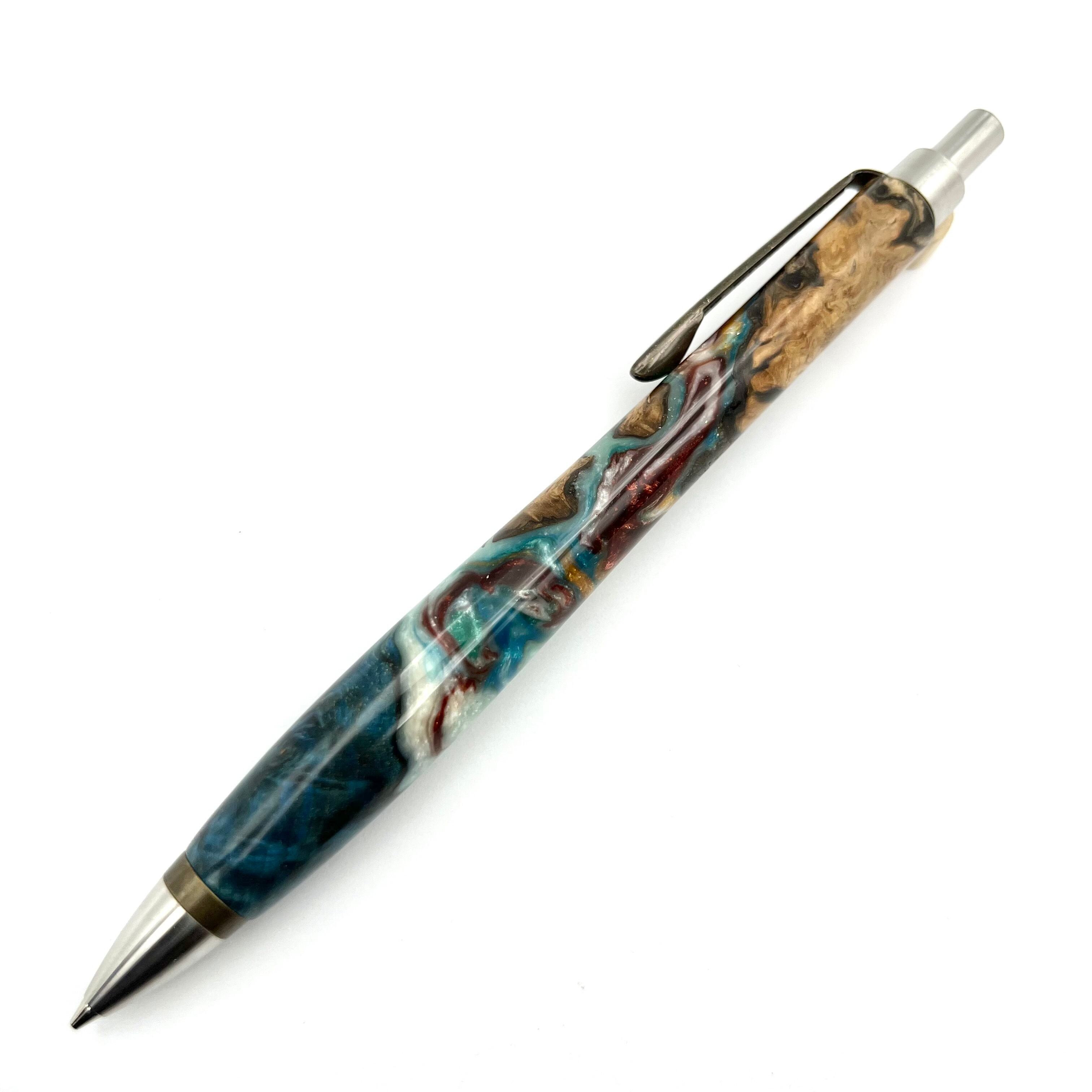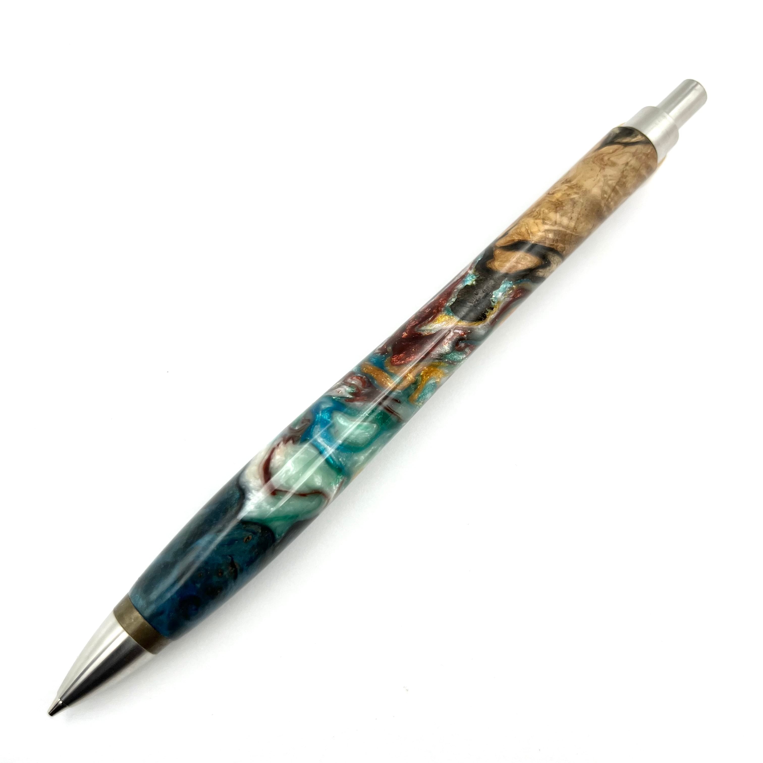 ペンシルは軸ブレが起こりにくい固定式口金を採用し、木の表情を最大限に楽しめる木軸の長さと、書き心地にこだわったバランスで金具を設計してあります。