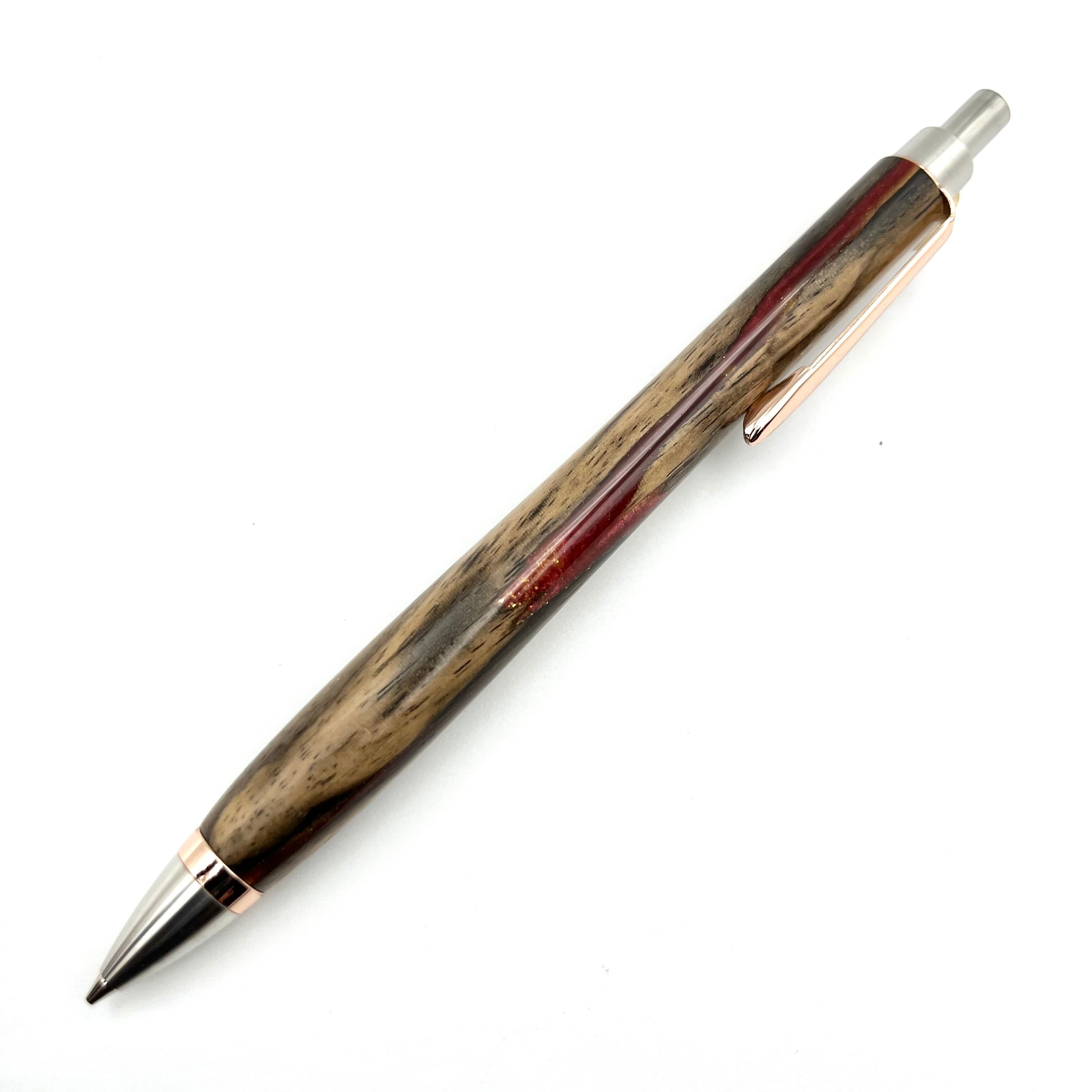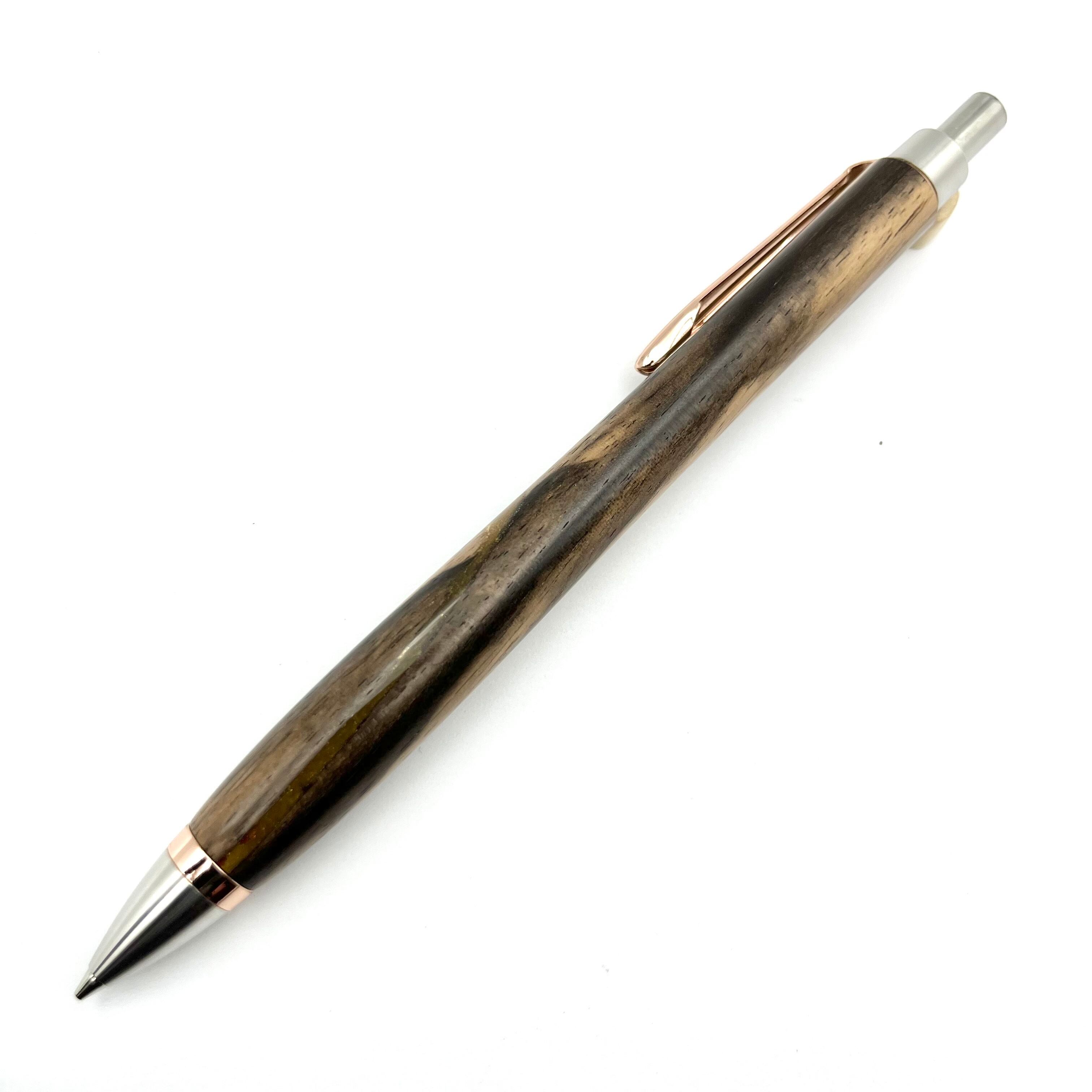 ペンシルは軸ブレが起こりにくい固定式口金を採用し、木の表情を最大限に楽しめる木軸の長さと、書き心地にこだわったバランスで金具を設計してあります。