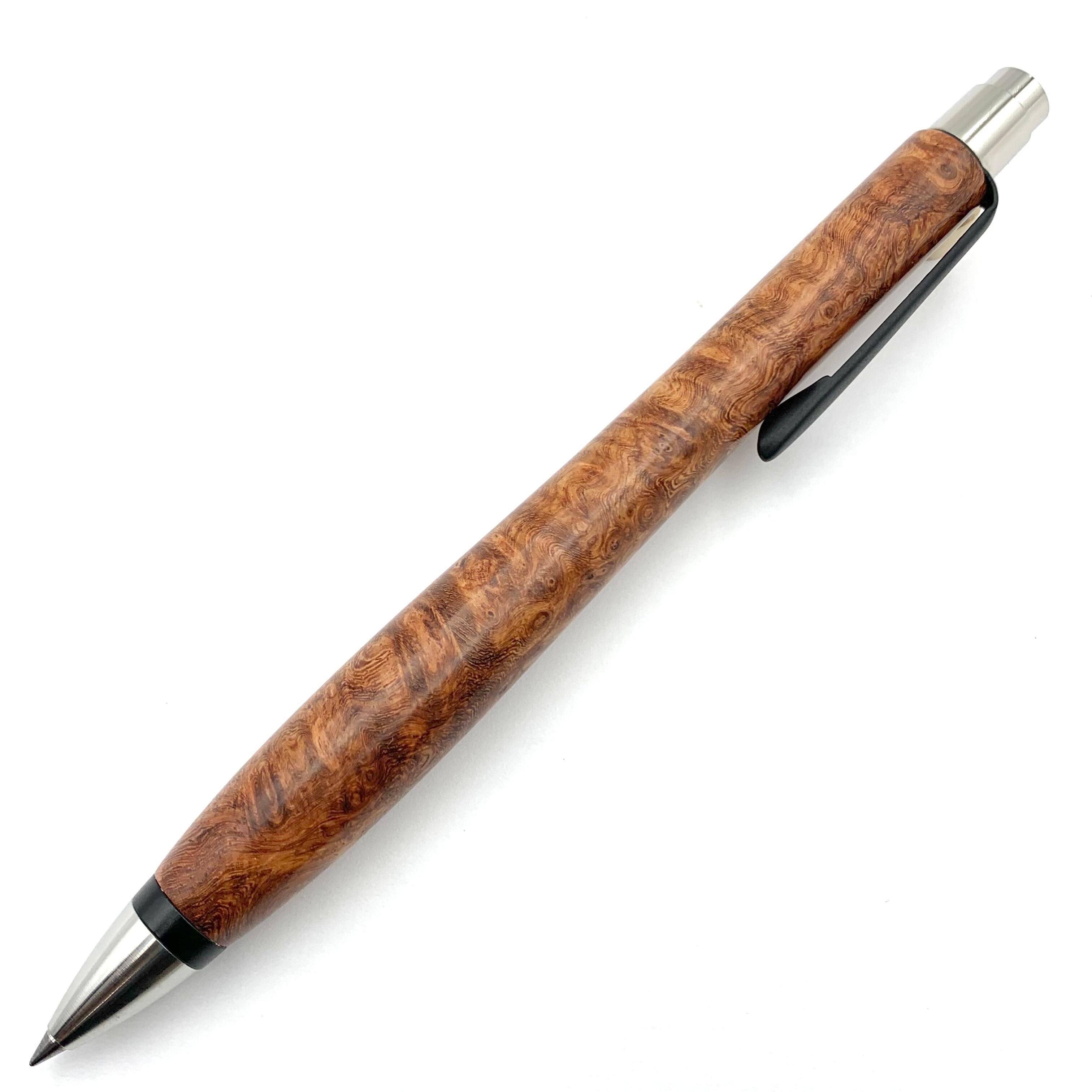 ボールペンのノックシステムは、ドイツ最高のクリックメカニズムを採用してあります。このメカニズムはユニークな機構のため、クリックしたときのカチカチ音が静かで、どんな場所でも気兼ねなく使うことができます。滑らかに動くこのプッシュ感覚を一度味わうと他には戻れなくなってしまうほどの魅力があります。 100分の1単位の加工精度で削り出されたペン先は、軸ブレも全くありません。
