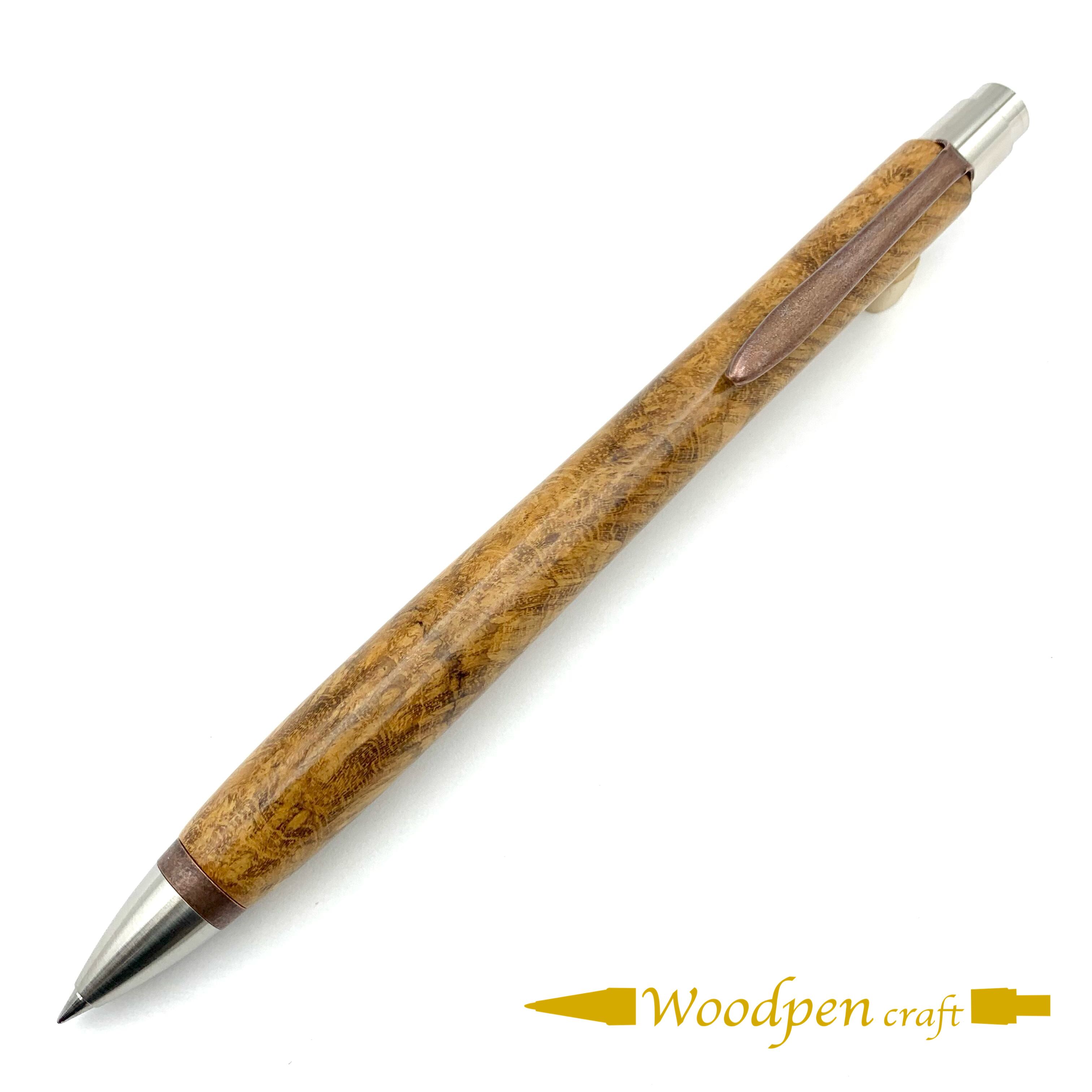ボールペンのノックシステムは、ドイツ最高のクリックメカニズムを採用してあります。このメカニズムはユニークな機構のため、クリックしたときのカチカチ音が静かで、どんな場所でも気兼ねなく使うことができます。滑らかに動くこのプッシュ感覚を一度味わうと他には戻れなくなってしまうほどの魅力があります。 100分の1単位の加工精度で削り出されたペン先は、軸ブレも全くありません。
