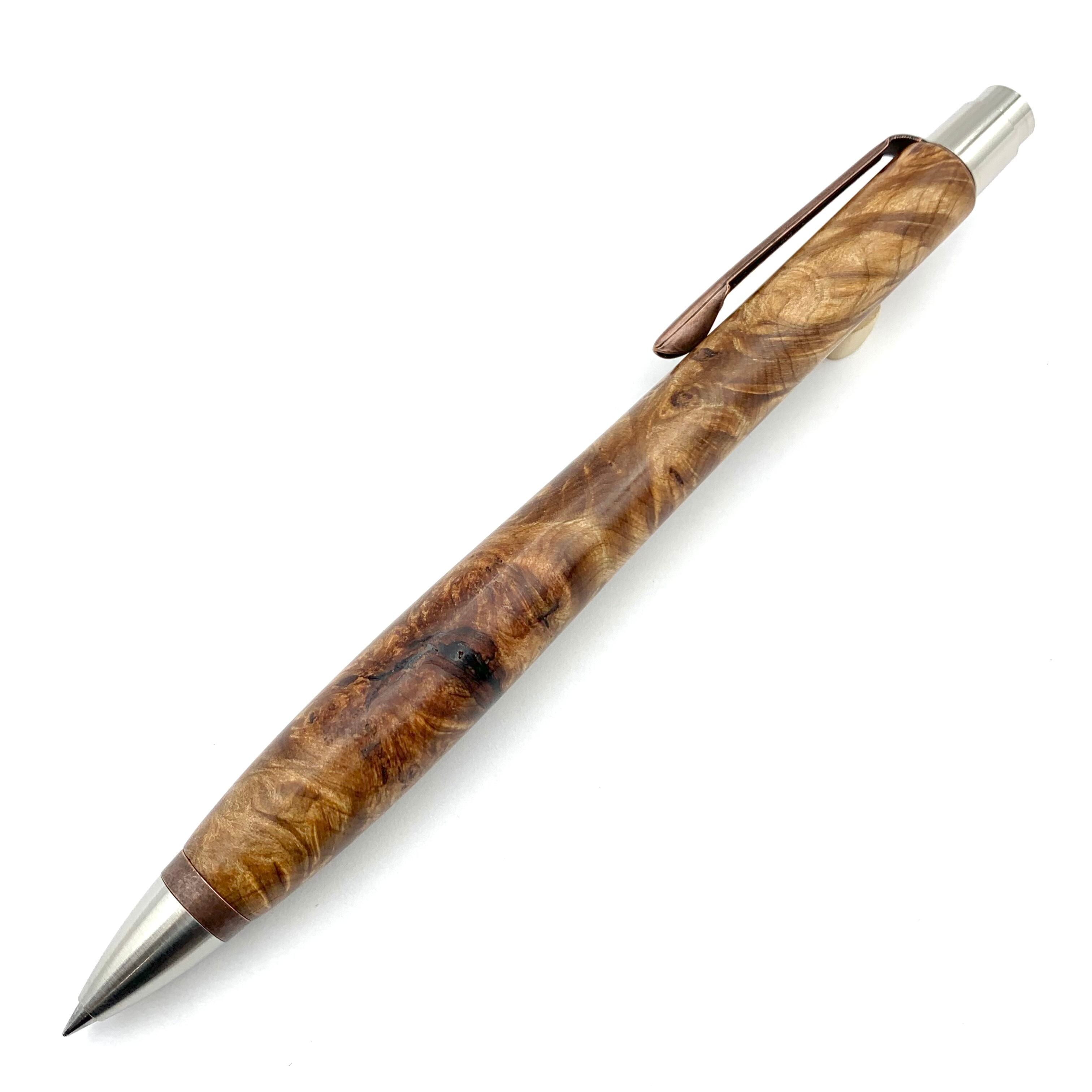ボールペンのノックシステムは、ドイツ最高のクリックメカニズムを採用してあります。このメカニズムはユニークな機構のため、クリックしたときのカチカチ音が静かで、どんな場所でも気兼ねなく使うことができます。滑らかに動くこのプッシュ感覚を一度味わうと他には戻れなくなってしまうほどの魅力があります。 100分の1単位の加工精度で削り出されたペン先は、軸ブレも全くありません。