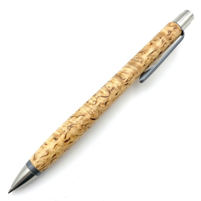 ボールペンのノックシステムは、ドイツ最高のクリックメカニズムを採用してあります。このメカニズムはユニークな機構のため、クリックしたときのカチカチ音が静かで、どんな場所でも気兼ねなく使うことができます。滑らかに動くこのプッシュ感覚を一度味わうと他には戻れなくなってしまうほどの魅力があります。 100分の1単位の加工精度で削り出されたペン先は、軸ブレも全くありません。