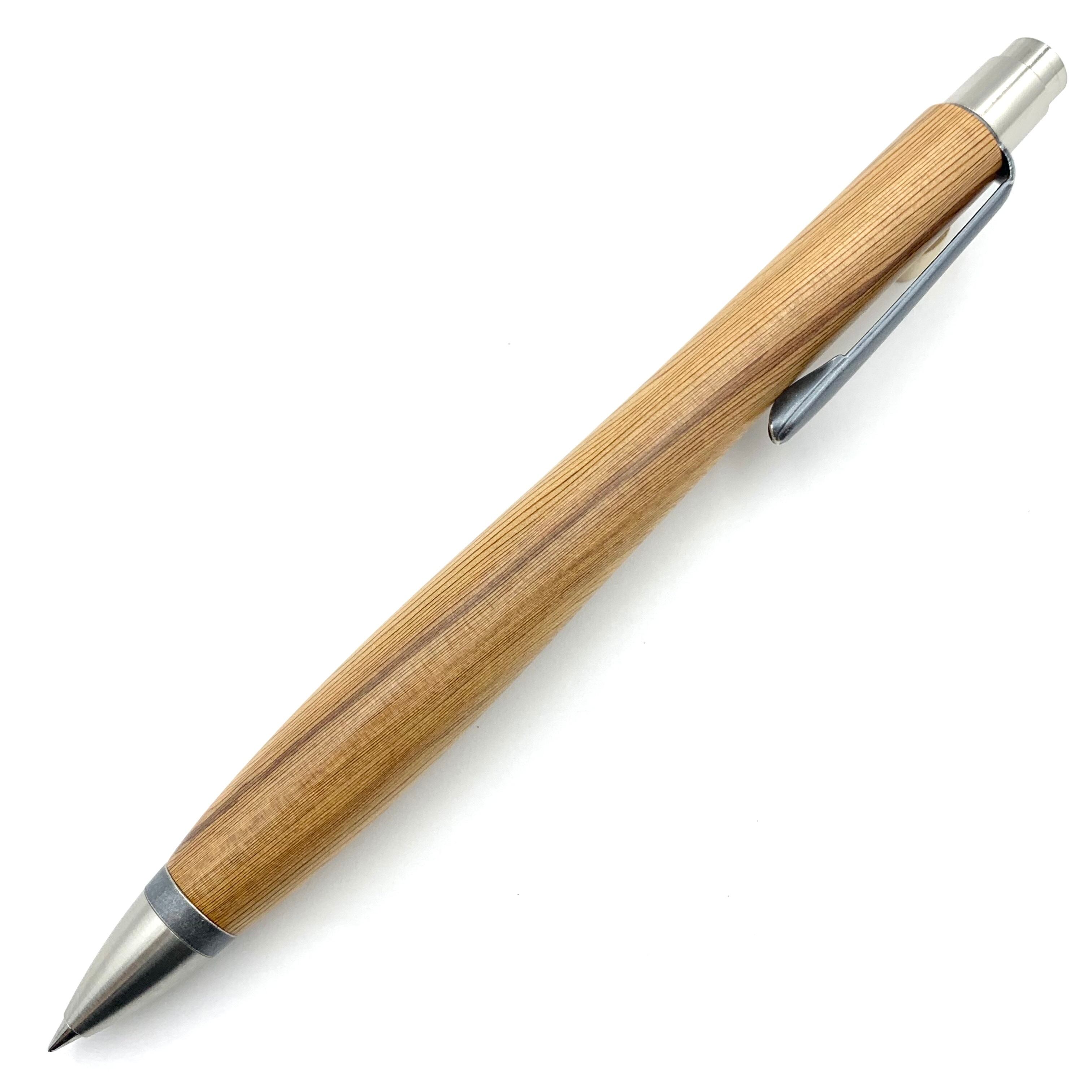ボールペンのノックシステムは、ドイツ最高のクリックメカニズムを採用してあります。このメカニズムはユニークな機構のため、クリックしたときのカチカチ音が静かで、どんな場所でも気兼ねなく使うことができます。滑らかに動くこのプッシュ感覚を一度味わうと他には戻れなくなってしまうほどの魅力があります。 100分の1単位の加工精度で削り出されたペン先は、軸ブレも全くありません。