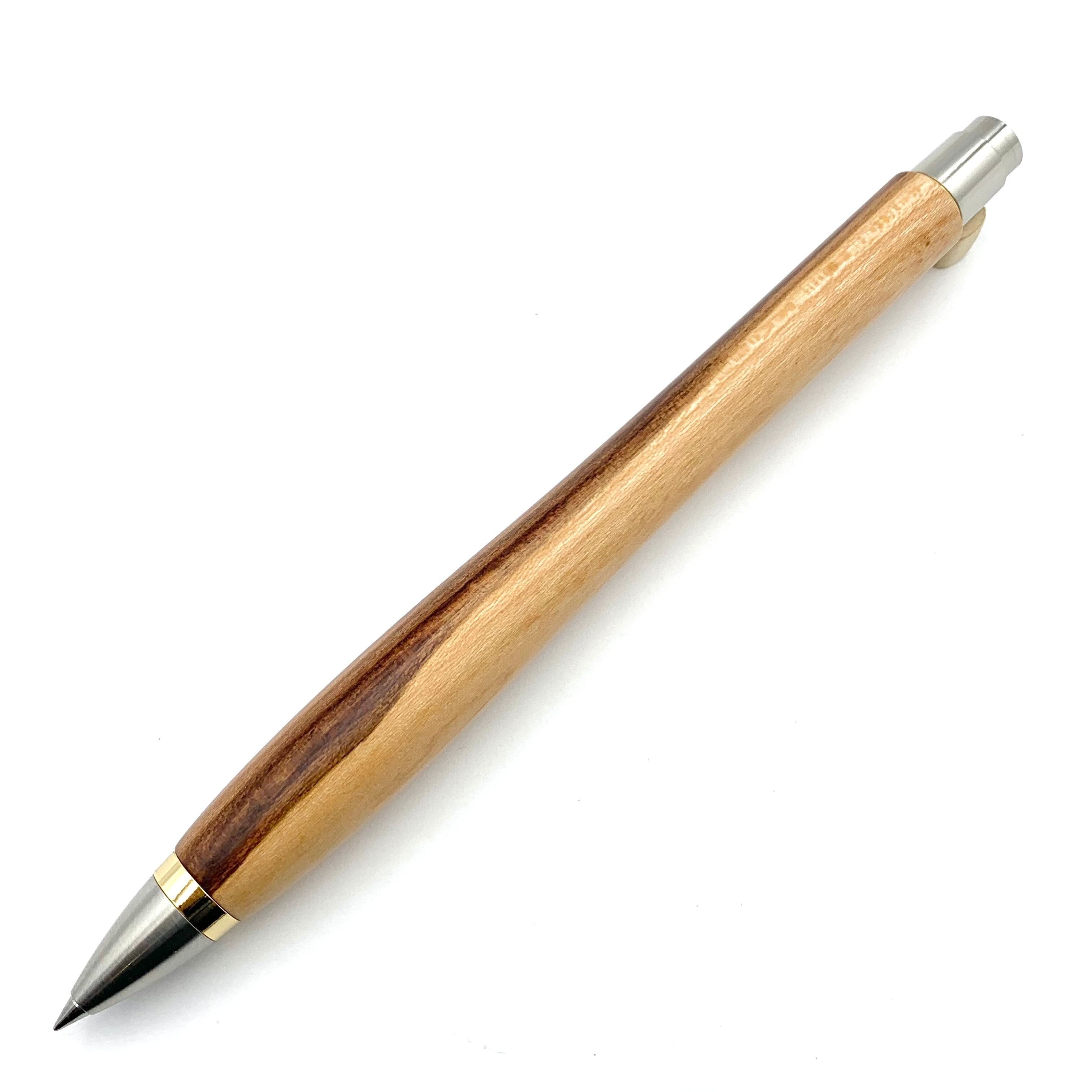 ボールペンのノックシステムは、ドイツ最高のクリックメカニズムを採用してあります。このメカニズムはユニークな機構のため、クリックしたときのカチカチ音が静かで、どんな場所でも気兼ねなく使うことができます。滑らかに動くこのプッシュ感覚を一度味わうと他には戻れなくなってしまうほどの魅力があります。 100分の1単位の加工精度で削り出されたペン先は、軸ブレも全くありません。