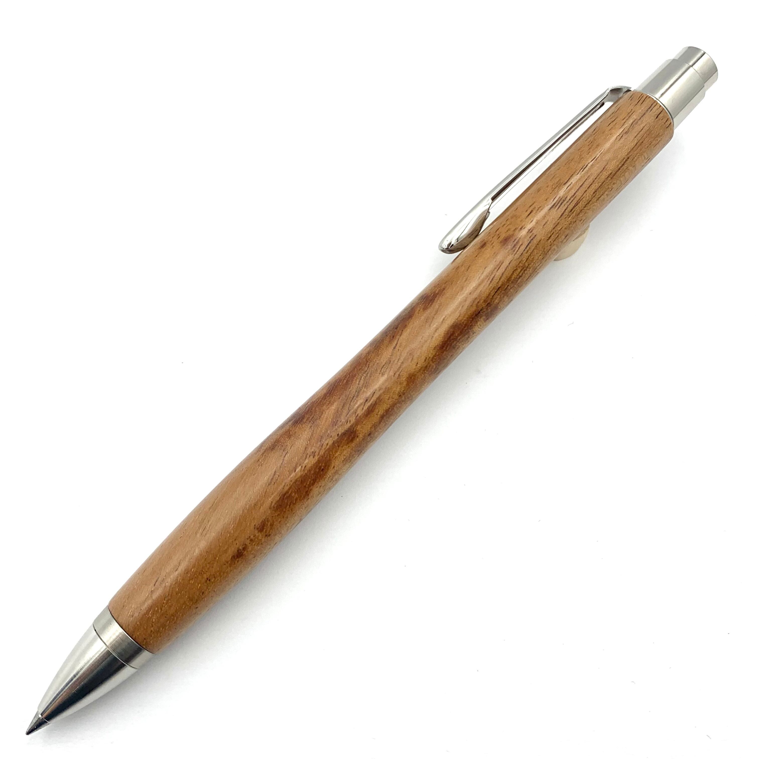 ボールペンのノックシステムは、ドイツ最高のクリックメカニズムを採用してあります。このメカニズムはユニークな機構のため、クリックしたときのカチカチ音が静かで、どんな場所でも気兼ねなく使うことができます。滑らかに動くこのプッシュ感覚を一度味わうと他には戻れなくなってしまうほどの魅力があります。 100分の1単位の加工精度で削り出されたペン先は、軸ブレも全くありません。