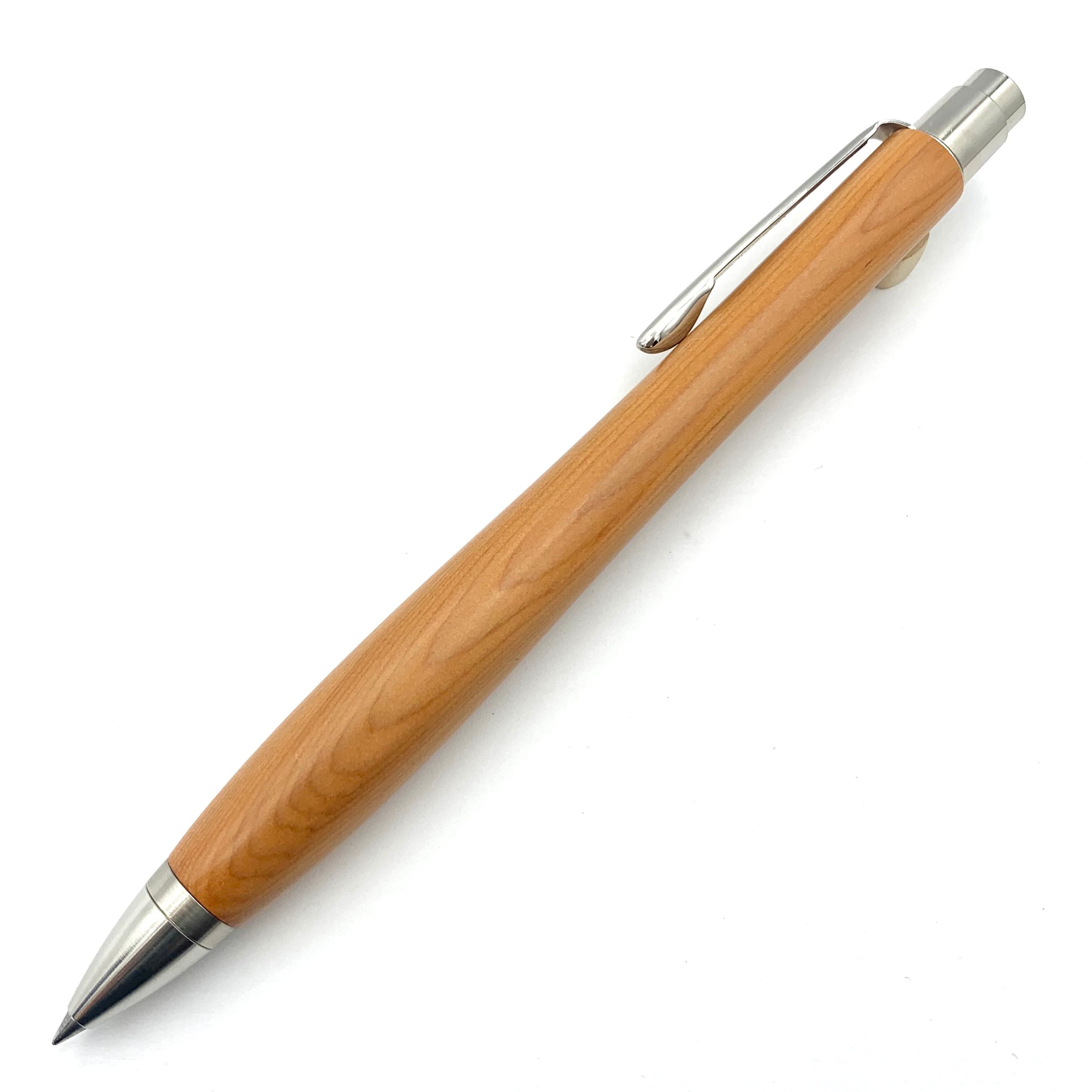 ボールペンのノックシステムは、ドイツ最高のクリックメカニズムを採用してあります。このメカニズムはユニークな機構のため、クリックしたときのカチカチ音が静かで、どんな場所でも気兼ねなく使うことができます。滑らかに動くこのプッシュ感覚を一度味わうと他には戻れなくなってしまうほどの魅力があります。 100分の1単位の加工精度で削り出されたペン先は、軸ブレも全くありません。