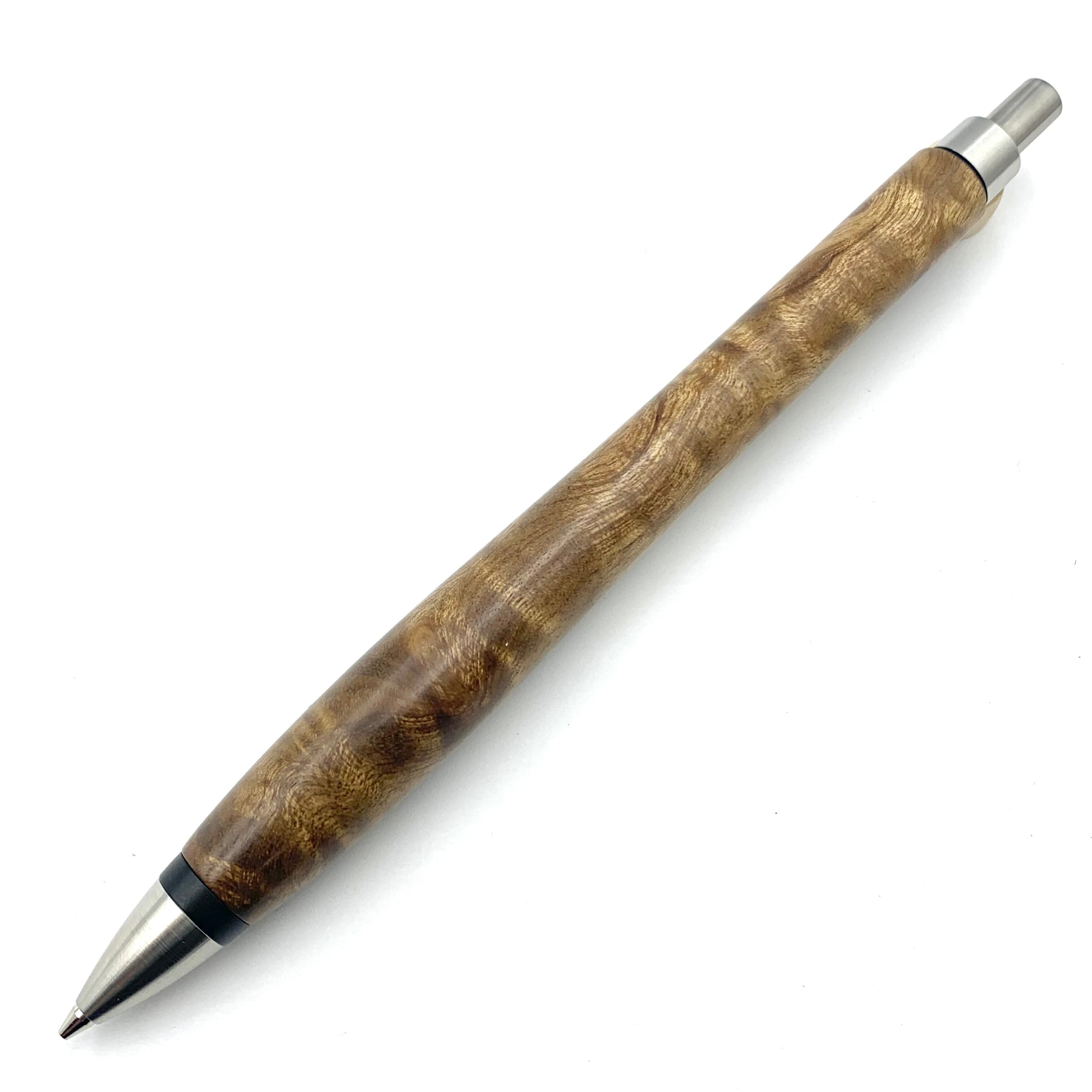 ペンシルは軸ブレが起こりにくい固定式口金を採用し、木の表情を最大限に楽しめる木軸の長さと、書き心地にこだわったバランスで金具を設計してあります。