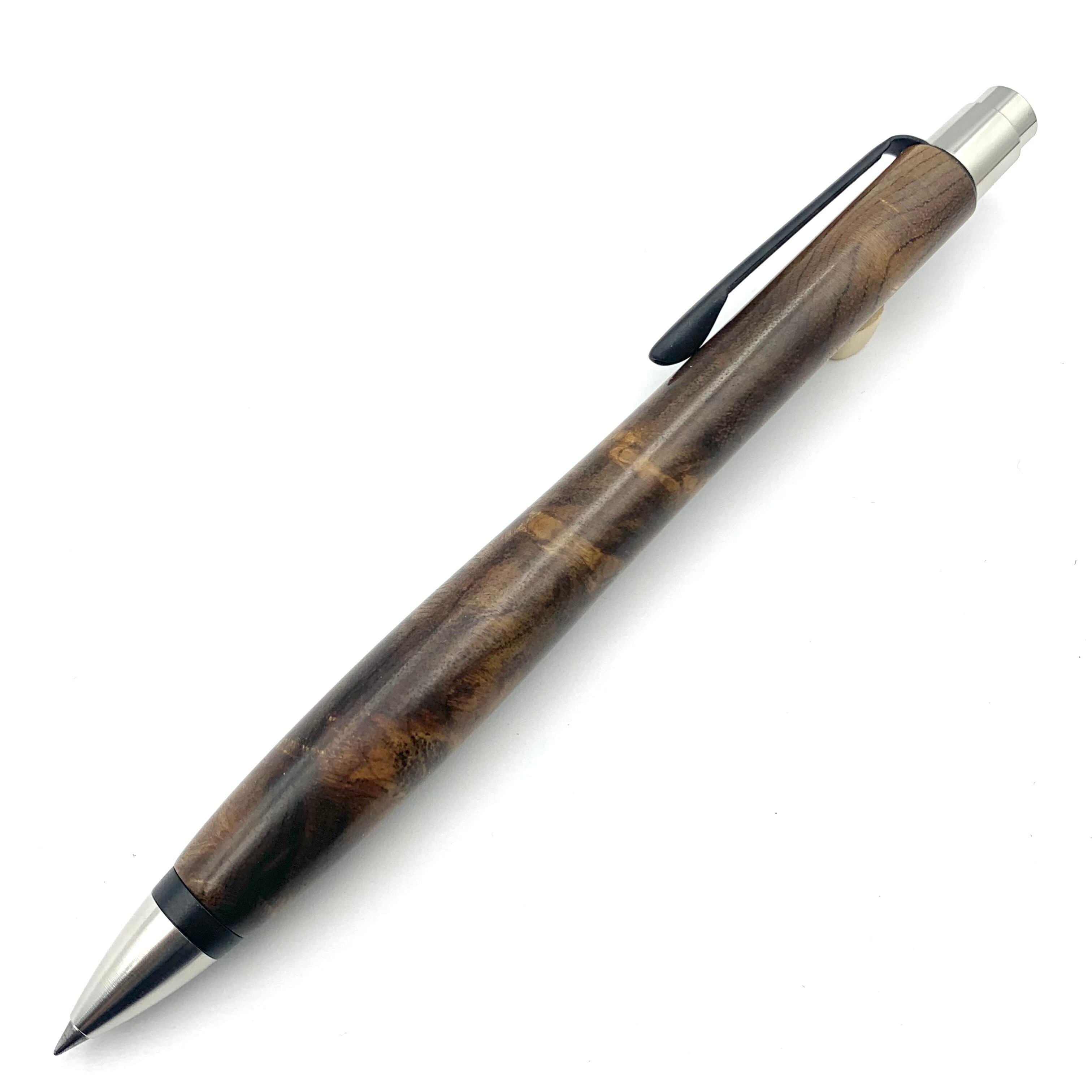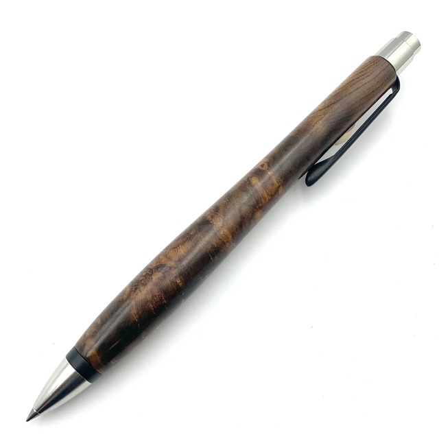 ボールペンのノックシステムは、ドイツ最高のクリックメカニズムを採用してあります。このメカニズムはユニークな機構のため、クリックしたときのカチカチ音が静かで、どんな場所でも気兼ねなく使うことができます。滑らかに動くこのプッシュ感覚を一度味わうと他には戻れなくなってしまうほどの魅力があります。 100分の1単位の加工精度で削り出されたペン先は、軸ブレも全くありません。