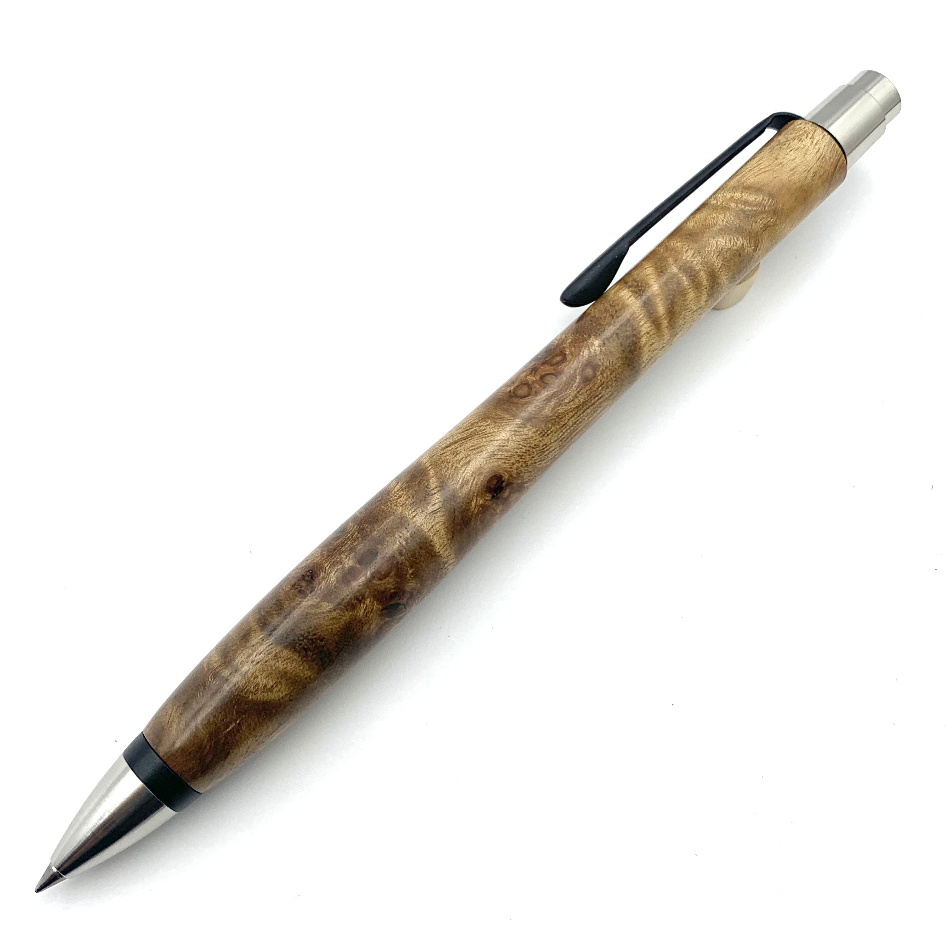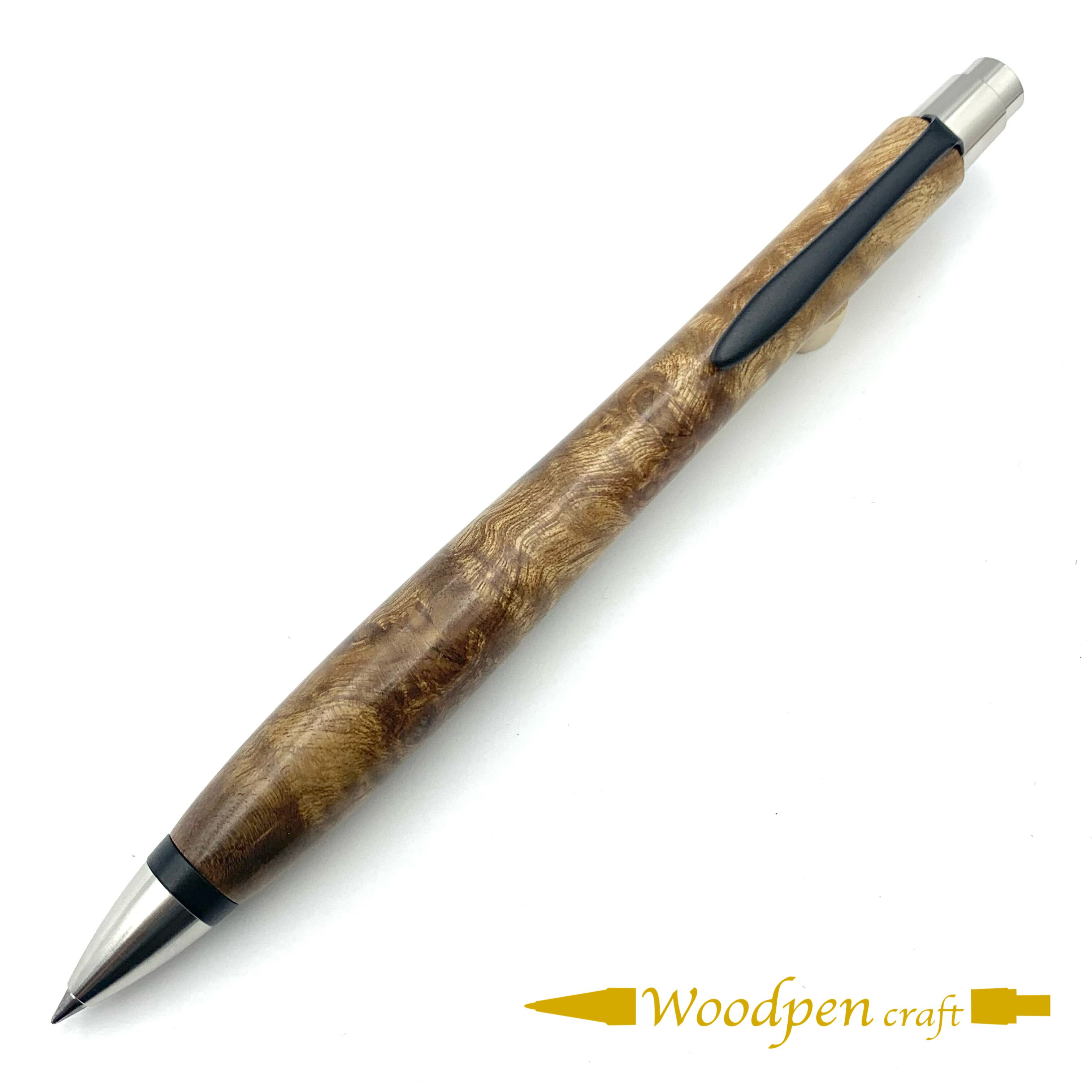 ボールペンのノックシステムは、ドイツ最高のクリックメカニズムを採用してあります。このメカニズムはユニークな機構のため、クリックしたときのカチカチ音が静かで、どんな場所でも気兼ねなく使うことができます。滑らかに動くこのプッシュ感覚を一度味わうと他には戻れなくなってしまうほどの魅力があります。 100分の1単位の加工精度で削り出されたペン先は、軸ブレも全くありません。