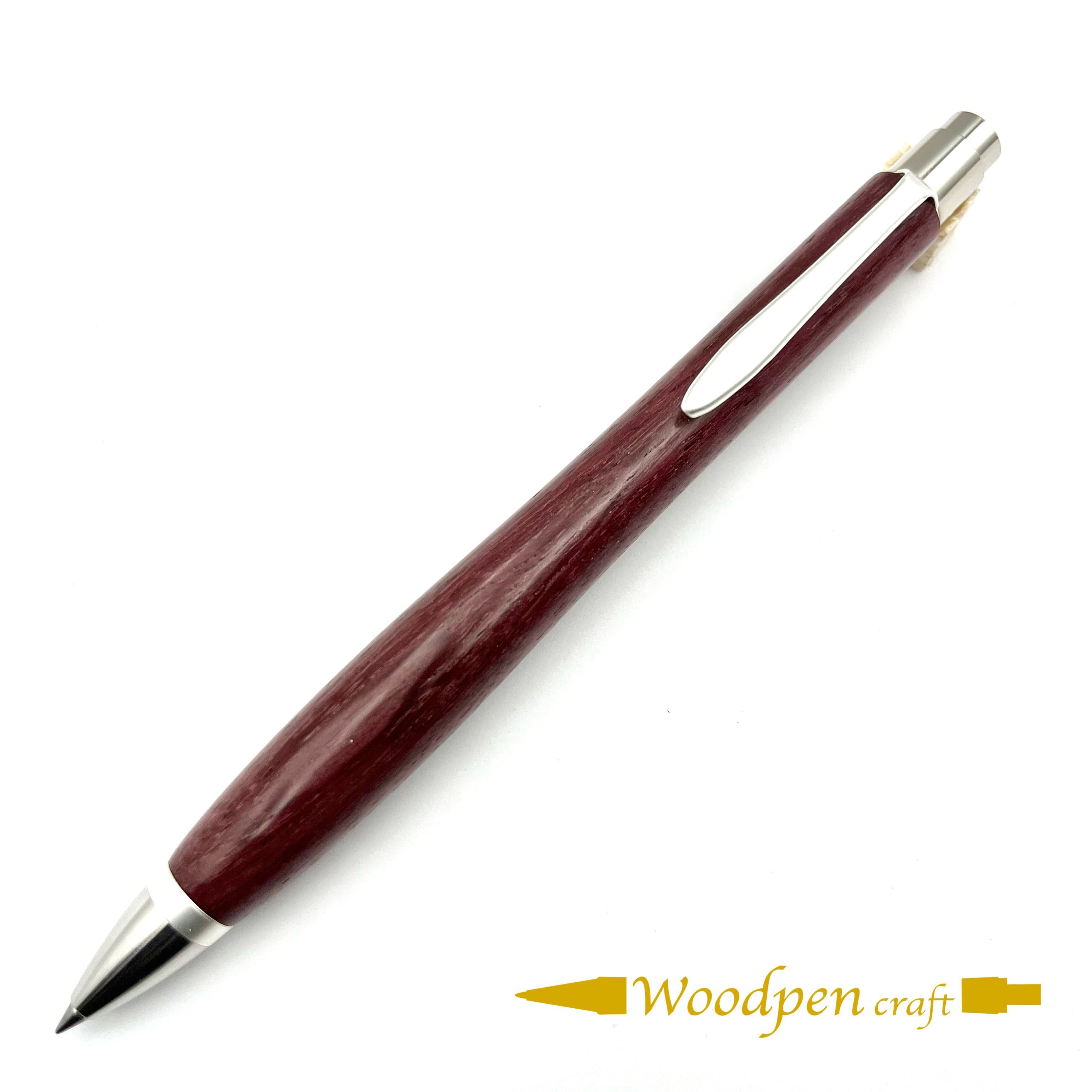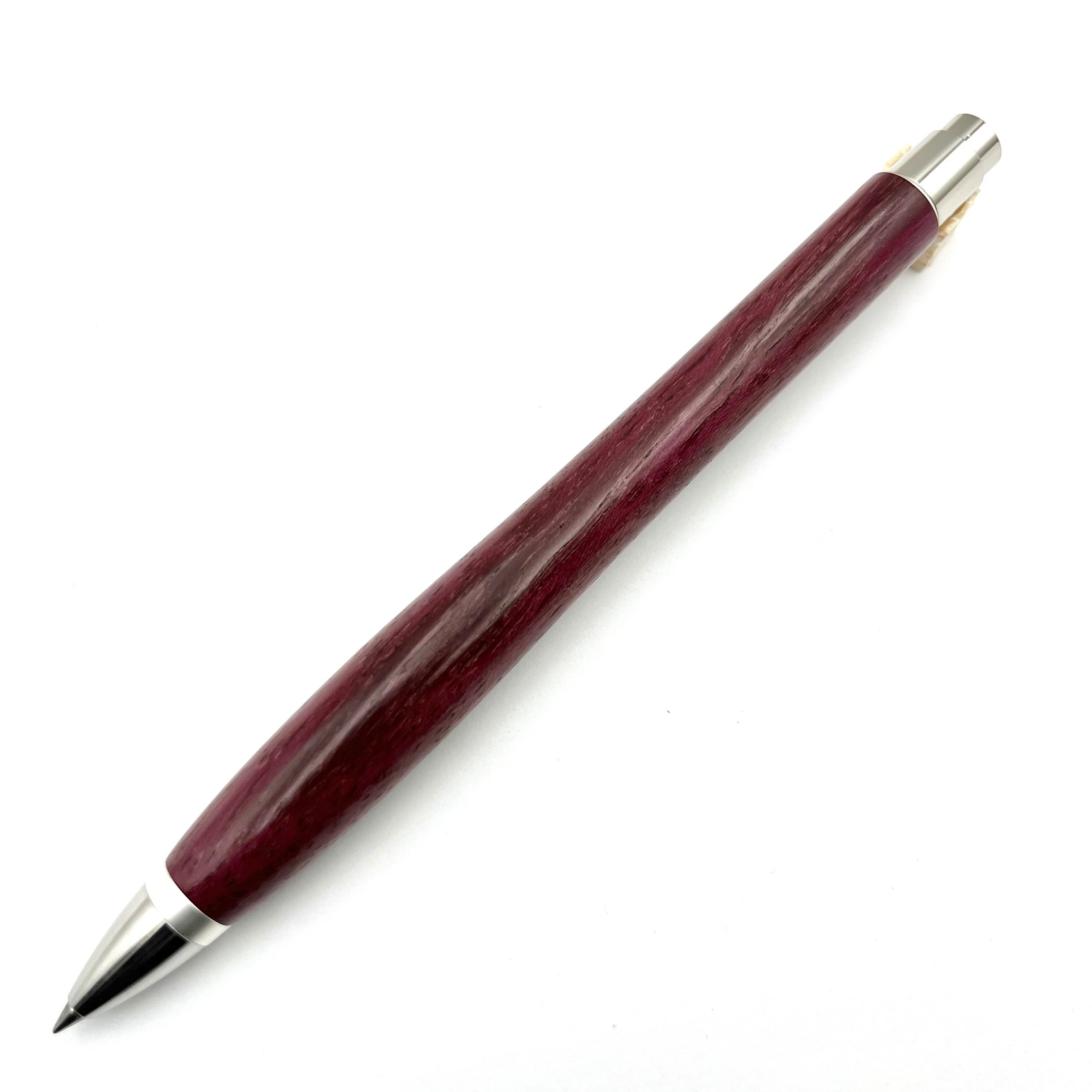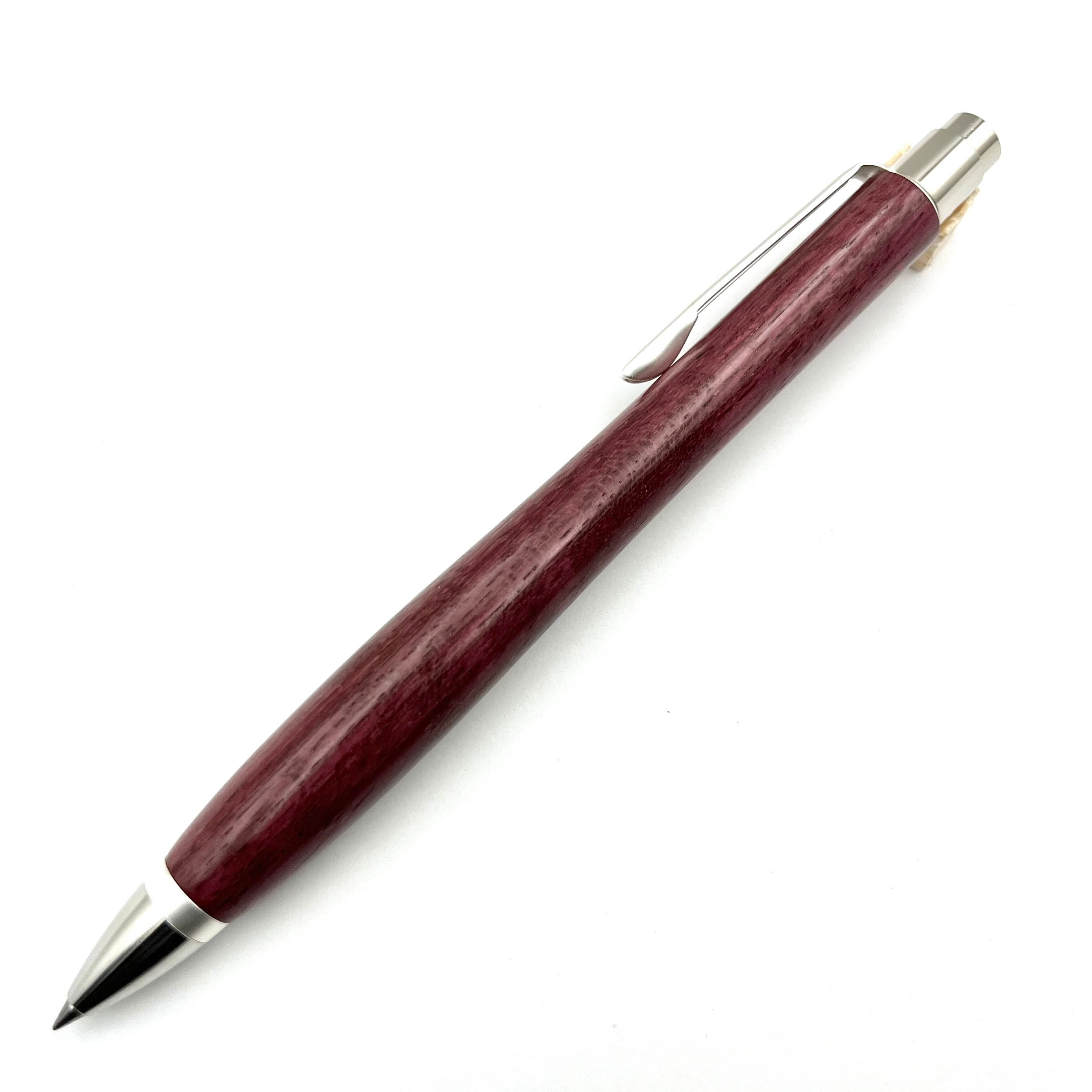 ボールペンのノックシステムは、ドイツ最高のクリックメカニズムを採用してあります。このメカニズムはユニークな機構のため、クリックしたときのカチカチ音が静かで、どんな場所でも気兼ねなく使うことができます。滑らかに動くこのプッシュ感覚を一度味わうと他には戻れなくなってしまうほどの魅力があります。 100分の1単位の加工精度で削り出されたペン先は、軸ブレも全くありません。