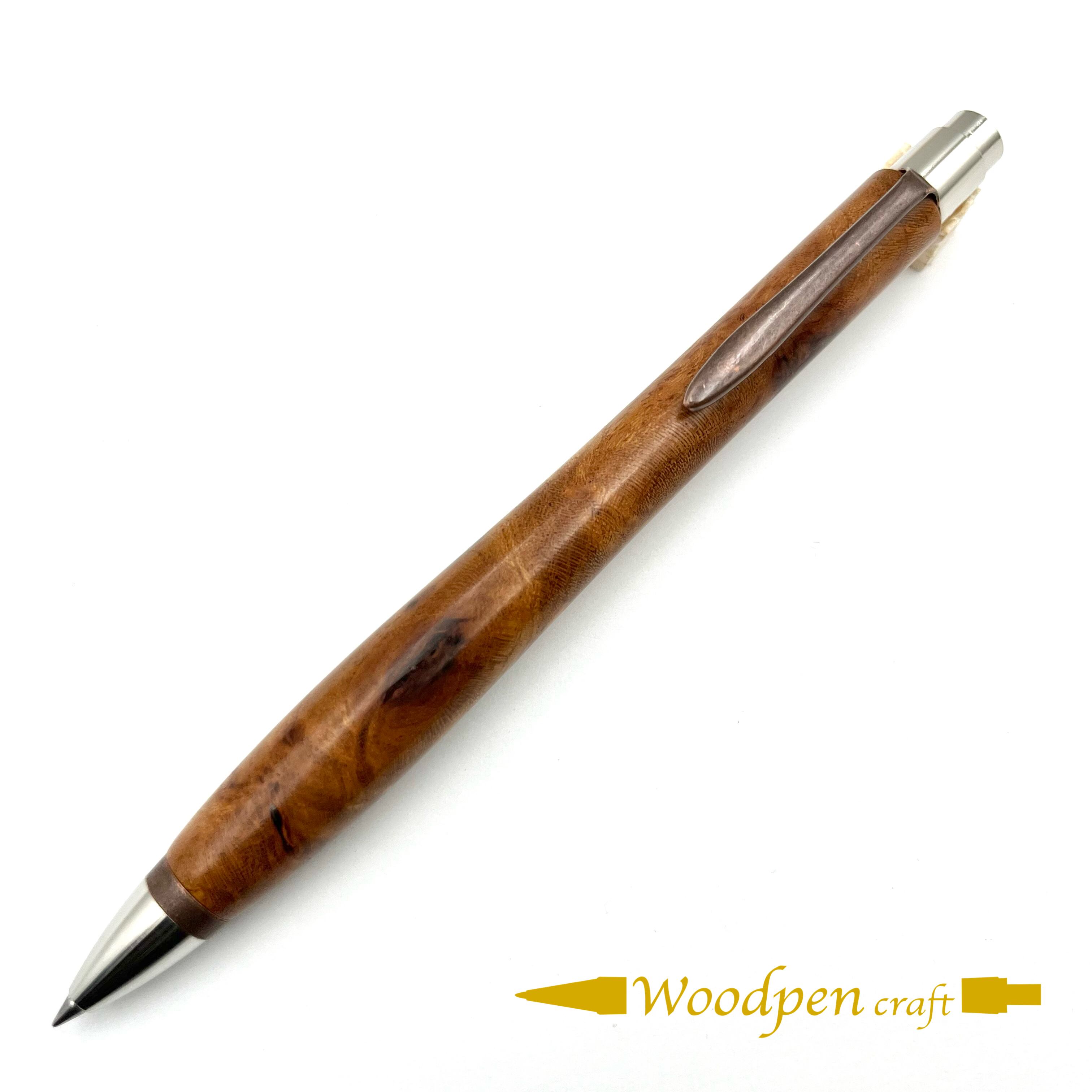 ボールペンのノックシステムは、ドイツ最高のクリックメカニズムを採用してあります。このメカニズムはユニークな機構のため、クリックしたときのカチカチ音が静かで、どんな場所でも気兼ねなく使うことができます。滑らかに動くこのプッシュ感覚を一度味わうと他には戻れなくなってしまうほどの魅力があります。 100分の1単位の加工精度で削り出されたペン先は、軸ブレも全くありません。