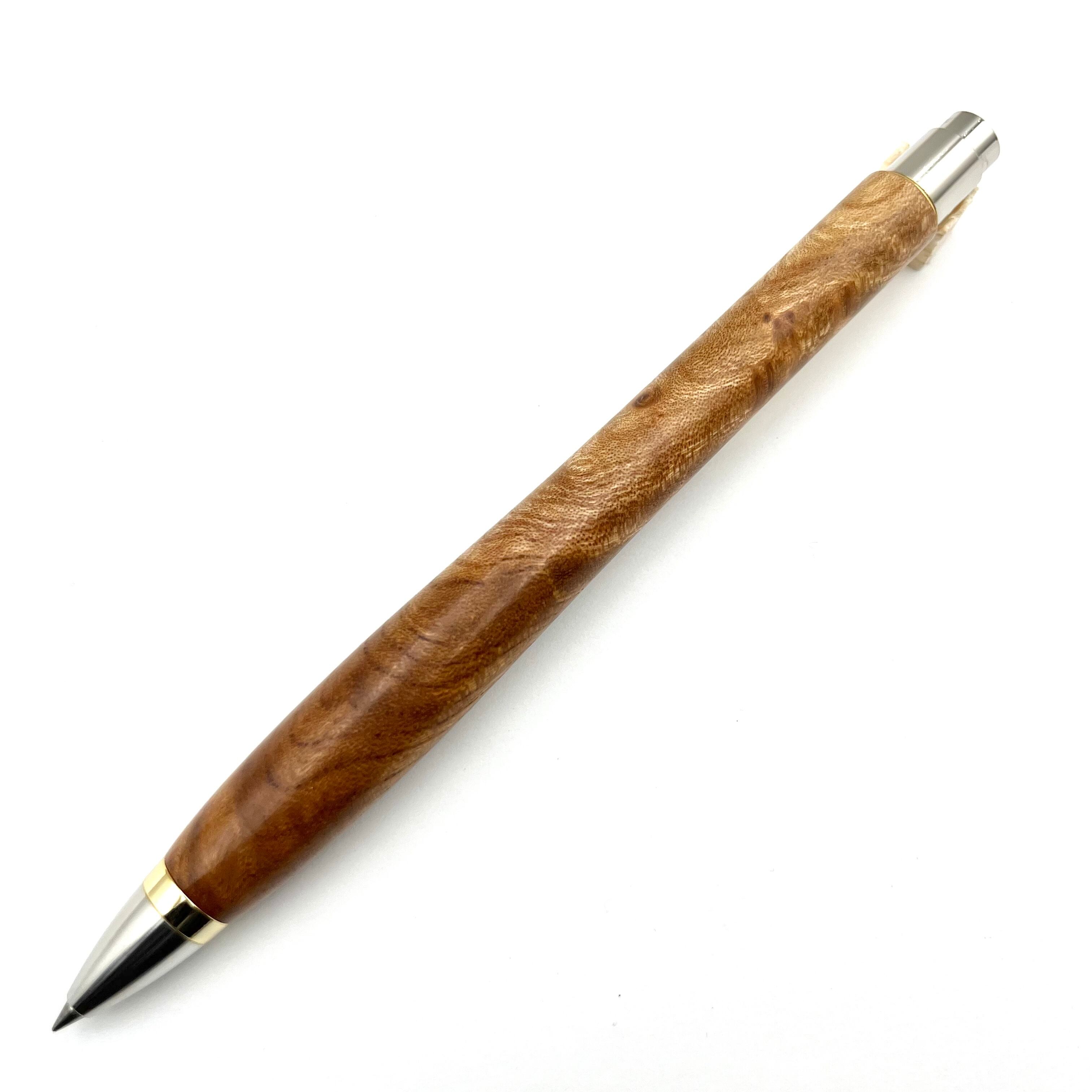 ボールペンのノックシステムは、ドイツ最高のクリックメカニズムを採用してあります。このメカニズムはユニークな機構のため、クリックしたときのカチカチ音が静かで、どんな場所でも気兼ねなく使うことができます。滑らかに動くこのプッシュ感覚を一度味わうと他には戻れなくなってしまうほどの魅力があります。 100分の1単位の加工精度で削り出されたペン先は、軸ブレも全くありません。