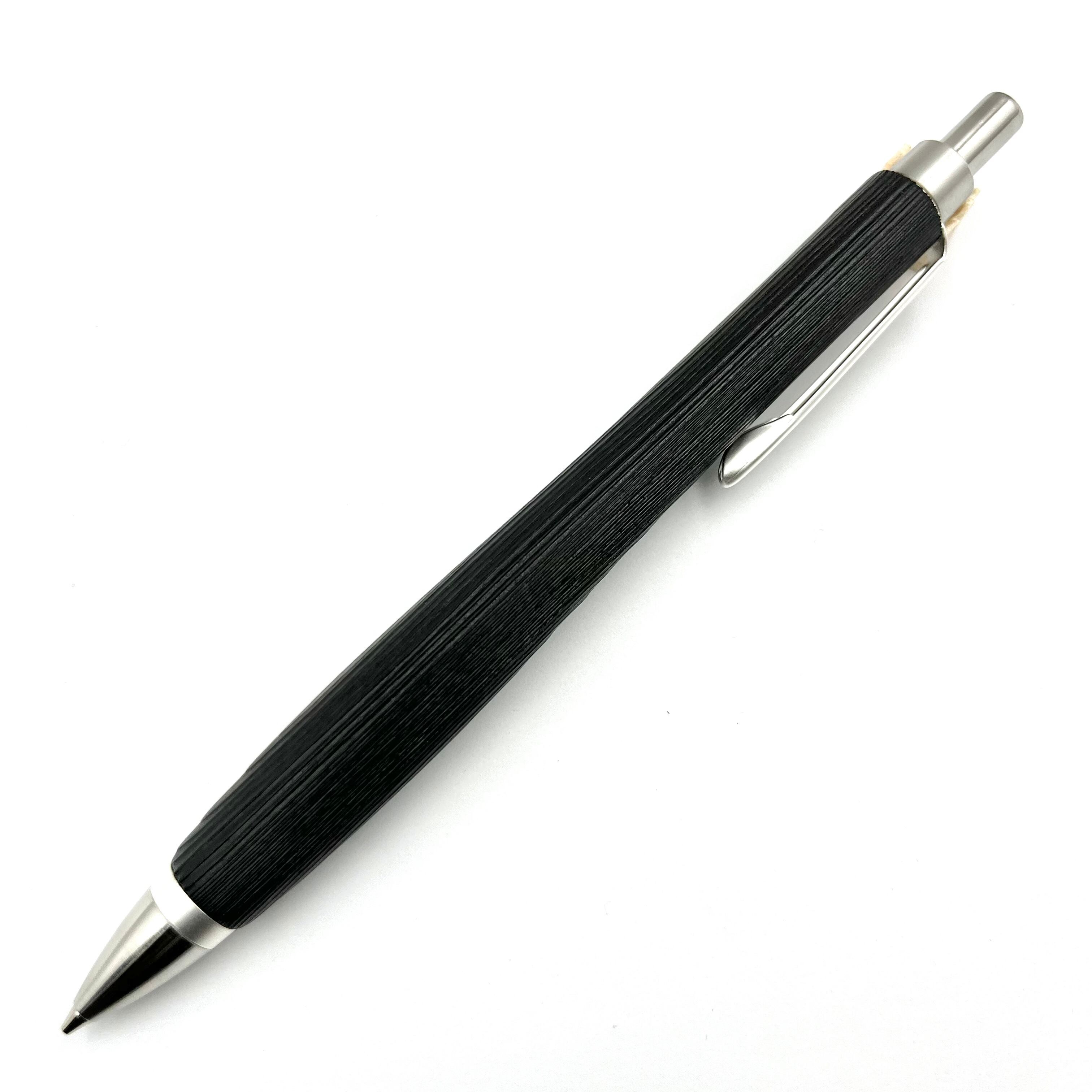 ペンシルは軸ブレが起こりにくい固定式口金を採用し、木の表情を最大限に楽しめる木軸の長さと、書き心地にこだわったバランスで金具を設計してあります。