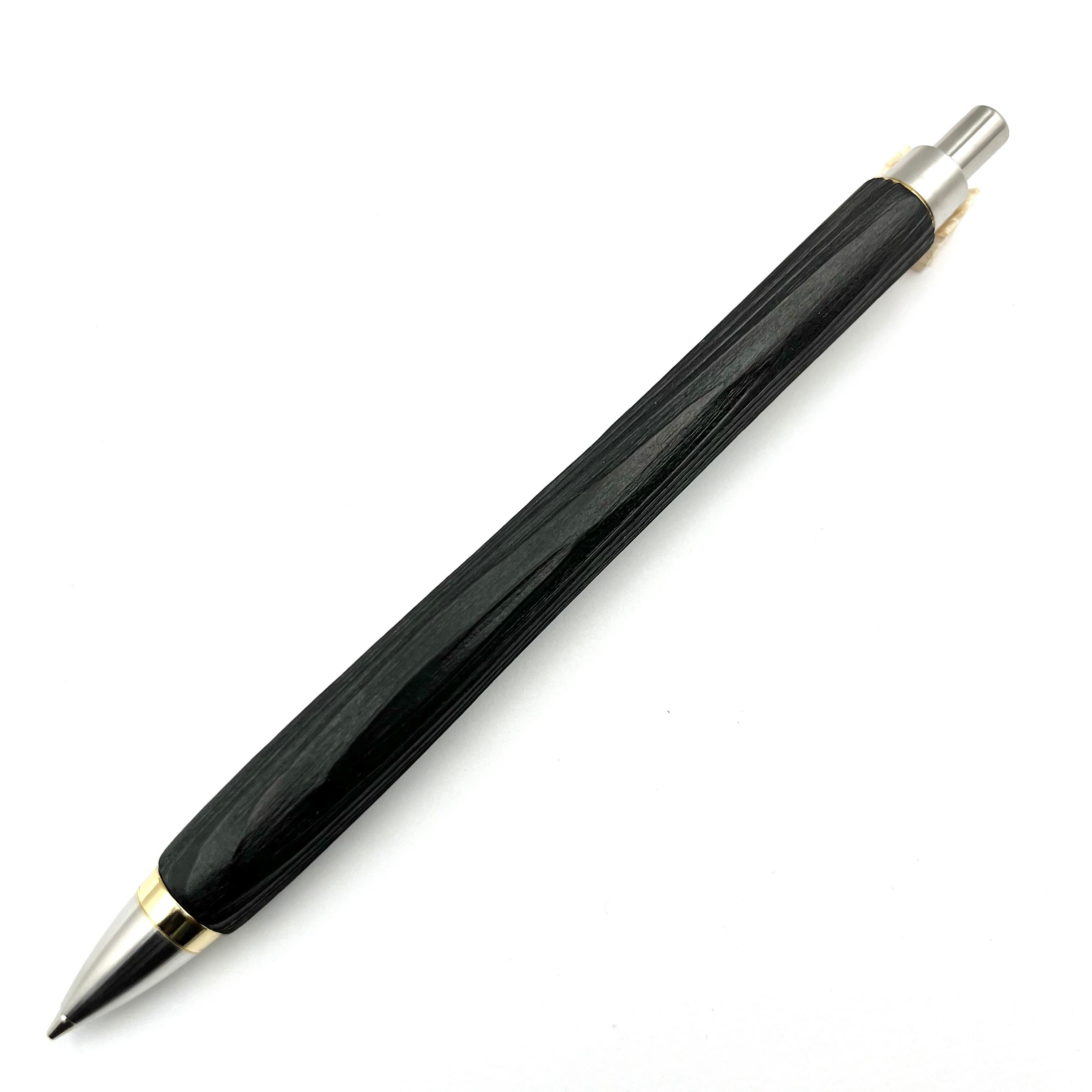 ペンシルは軸ブレが起こりにくい固定式口金を採用し、木の表情を最大限に楽しめる木軸の長さと、書き心地にこだわったバランスで金具を設計してあります。