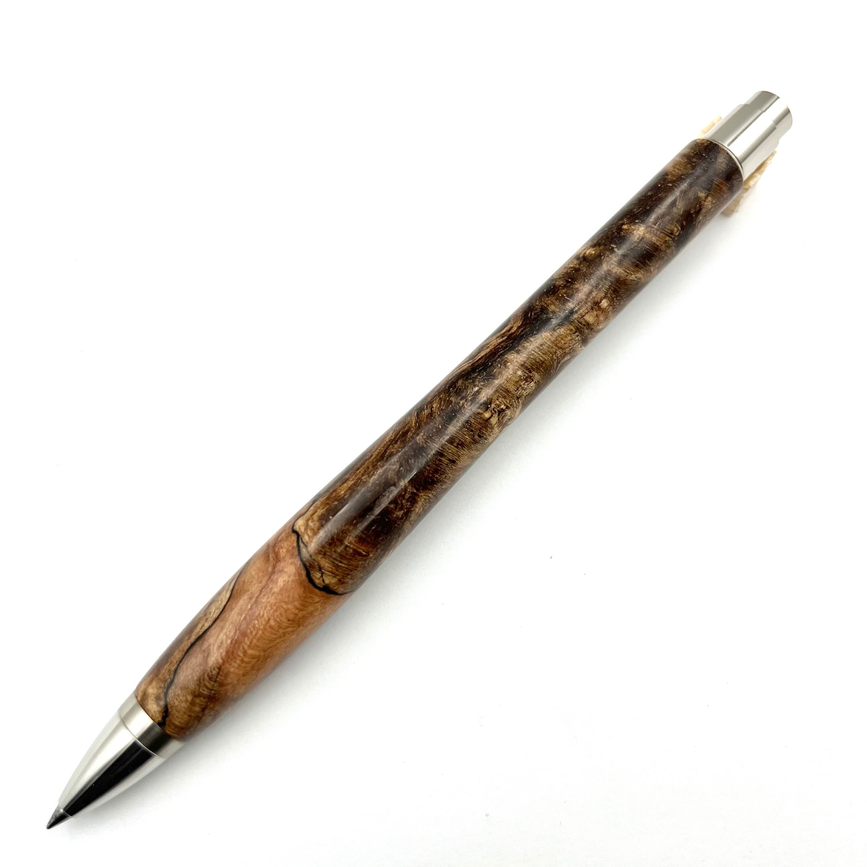 ボールペンのノックシステムは、ドイツ最高のクリックメカニズムを採用してあります。このメカニズムはユニークな機構のため、クリックしたときのカチカチ音が静かで、どんな場所でも気兼ねなく使うことができます。滑らかに動くこのプッシュ感覚を一度味わうと他には戻れなくなってしまうほどの魅力があります。 100分の1単位の加工精度で削り出されたペン先は、軸ブレも全くありません。