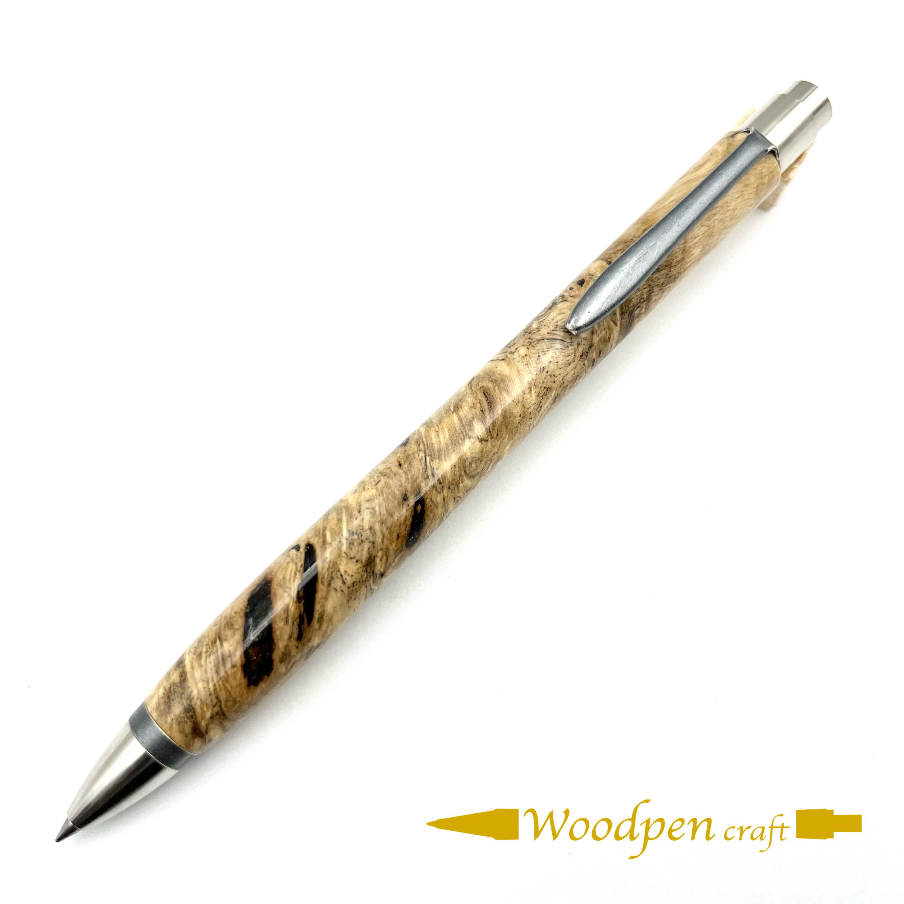 ボールペンのノックシステムは、ドイツ最高のクリックメカニズムを採用してあります。このメカニズムはユニークな機構のため、クリックしたときのカチカチ音が静かで、どんな場所でも気兼ねなく使うことができます。滑らかに動くこのプッシュ感覚を一度味わうと他には戻れなくなってしまうほどの魅力があります。 100分の1単位の加工精度で削り出されたペン先は、軸ブレも全くありません。