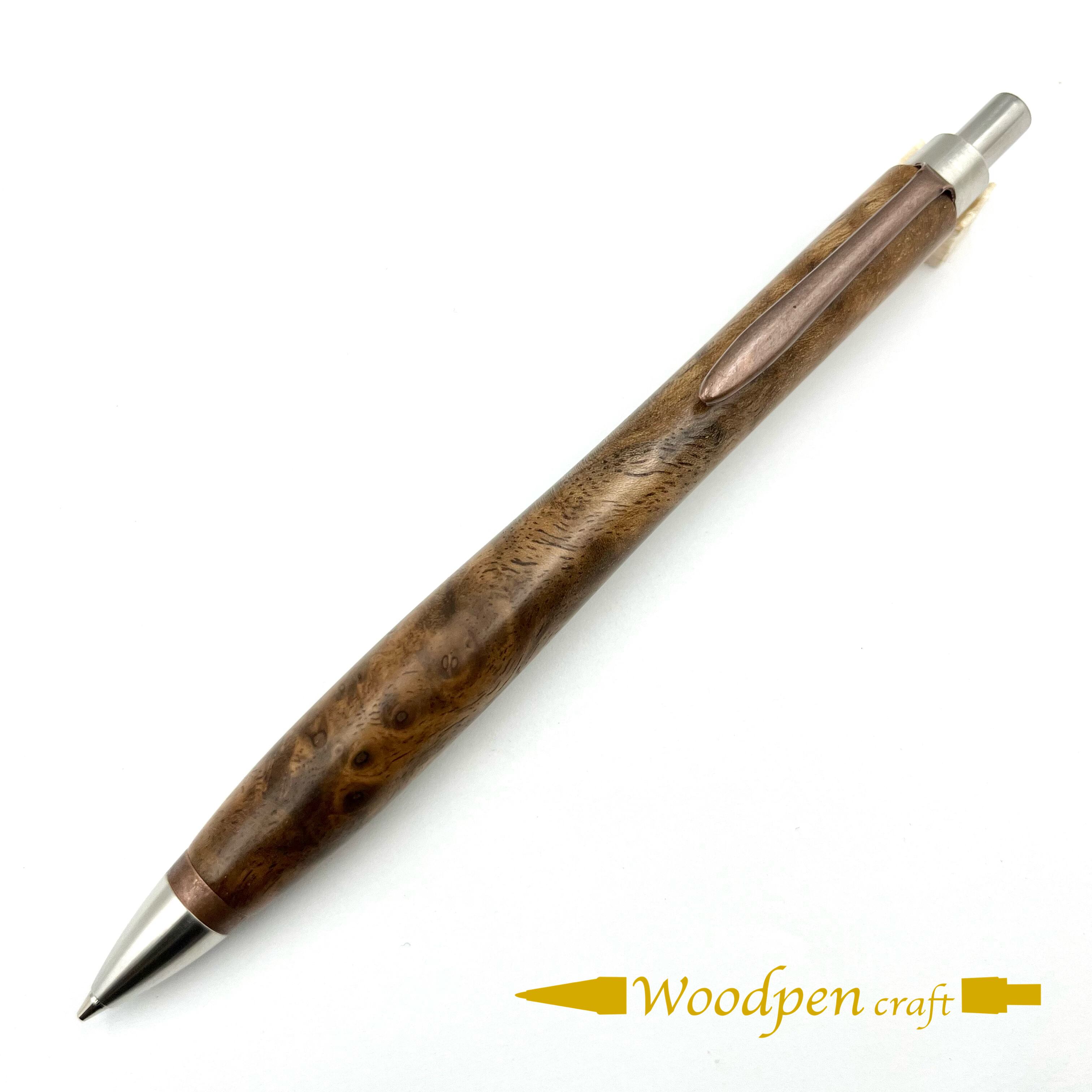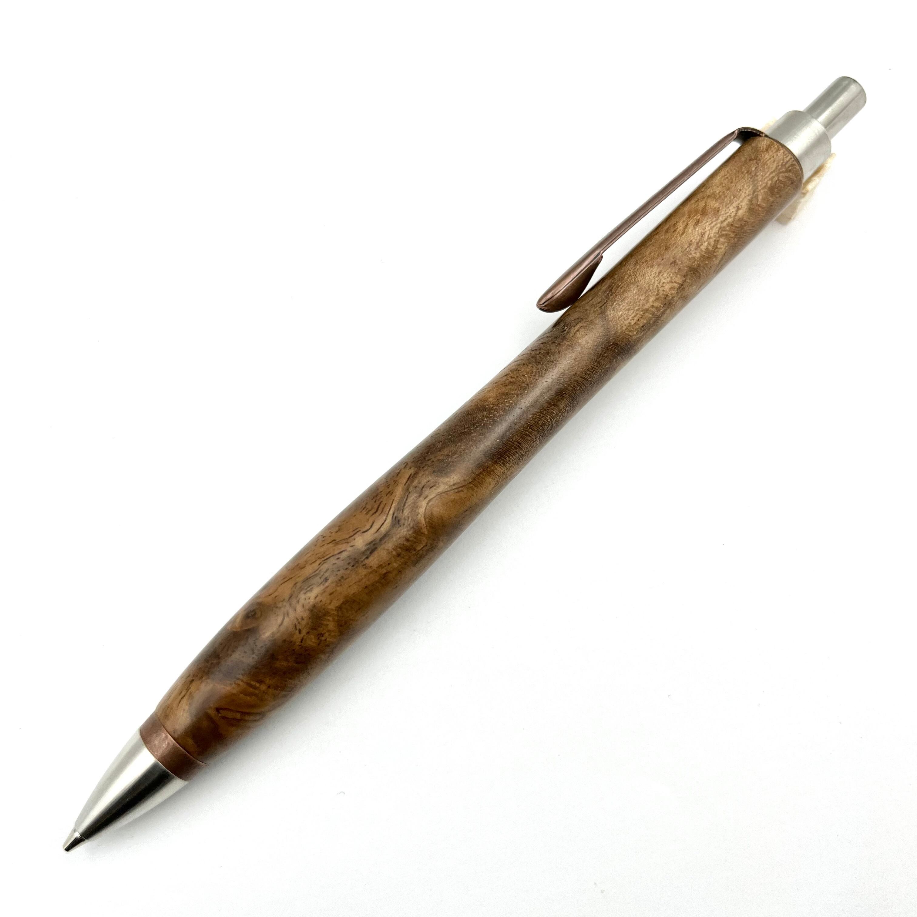 ペンシルは軸ブレが起こりにくい固定式口金を採用し、木の表情を最大限に楽しめる木軸の長さと、書き心地にこだわったバランスで金具を設計してあります。