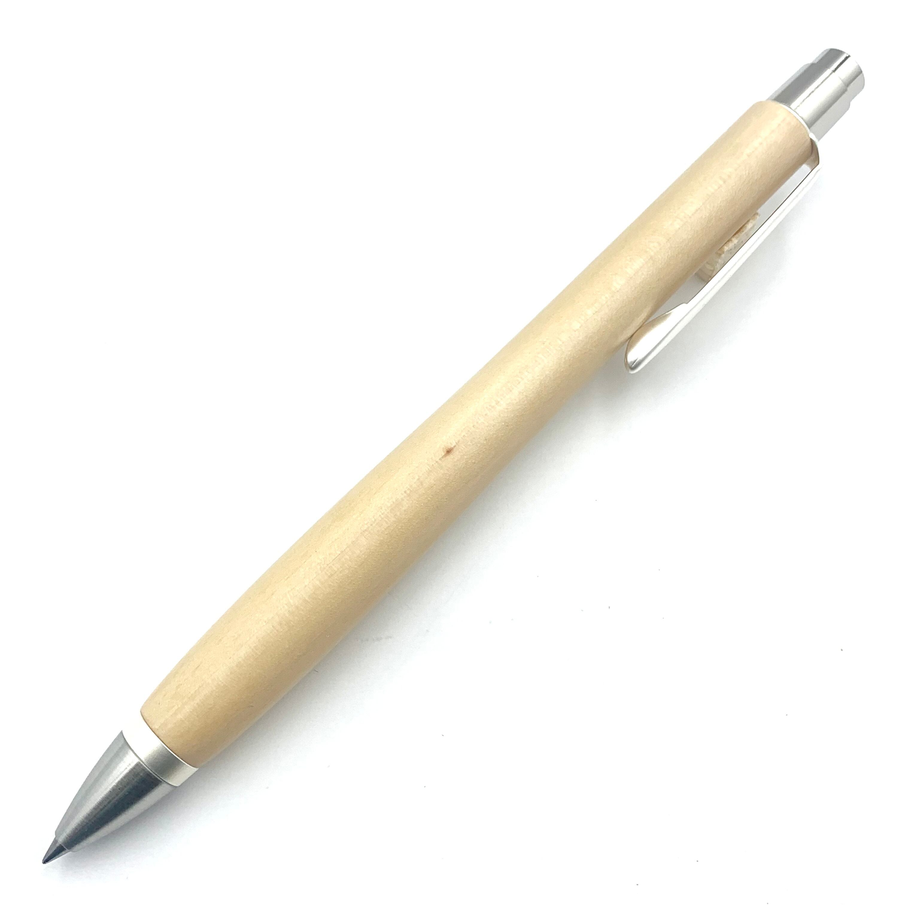 ボールペンのノックシステムは、ドイツ最高のクリックメカニズムを採用してあります。このメカニズムはユニークな機構のため、クリックしたときのカチカチ音が静かで、どんな場所でも気兼ねなく使うことができます。滑らかに動くこのプッシュ感覚を一度味わうと他には戻れなくなってしまうほどの魅力があります。 100分の1単位の加工精度で削り出されたペン先は、軸ブレも全くありません。