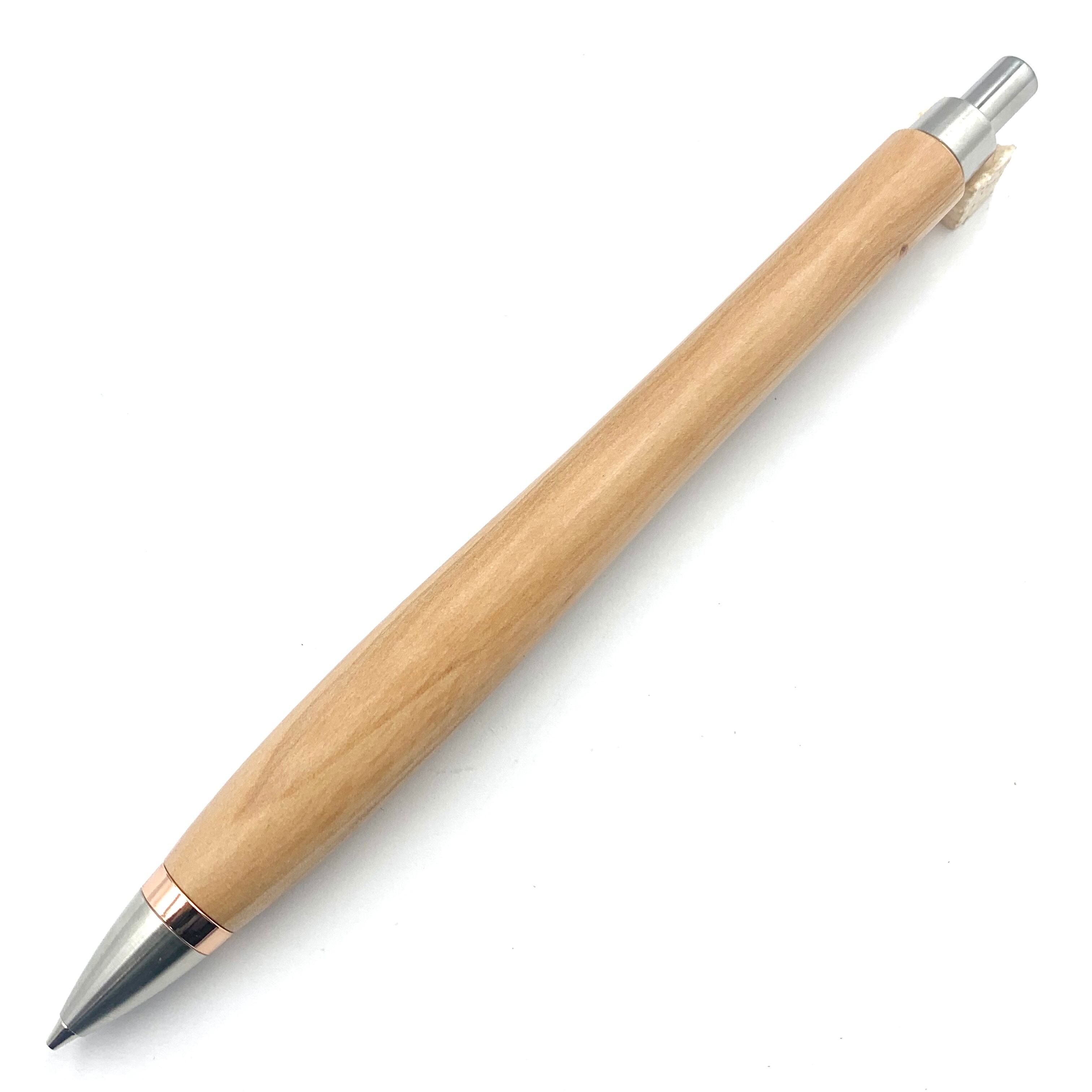 ペンシルは軸ブレが起こりにくい固定式口金を採用し、木の表情を最大限に楽しめる木軸の長さと、書き心地にこだわったバランスで金具を設計してあります。