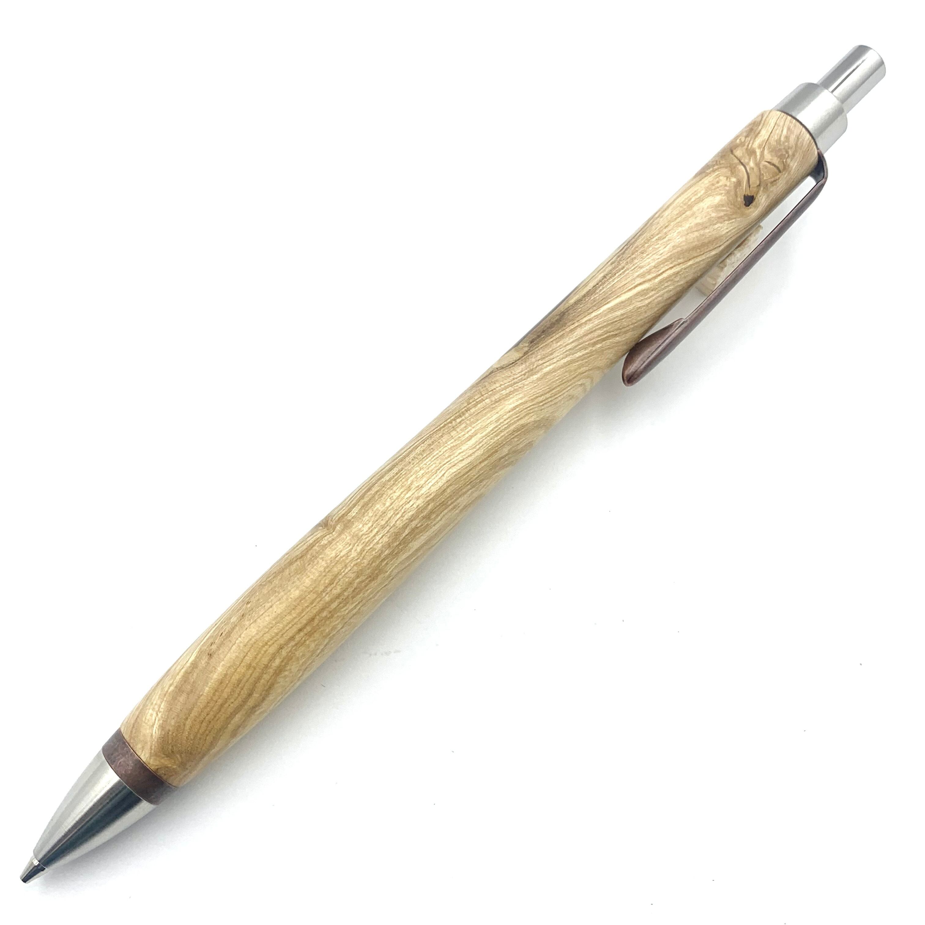 ペンシルは軸ブレが起こりにくい固定式口金を採用し、木の表情を最大限に楽しめる木軸の長さと、書き心地にこだわったバランスで金具を設計してあります。