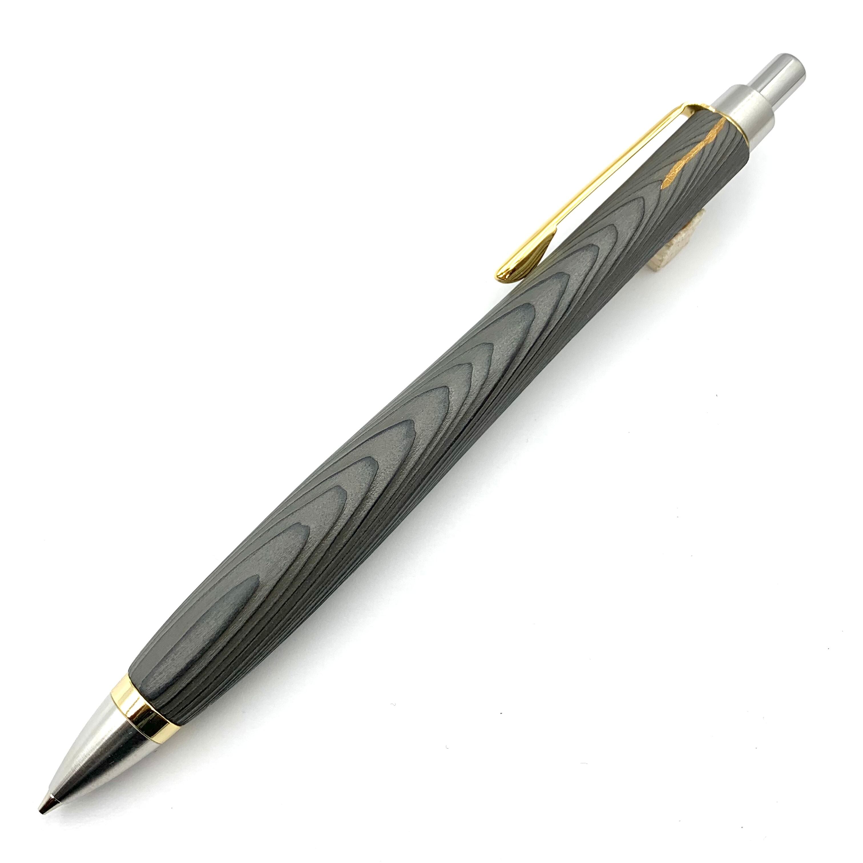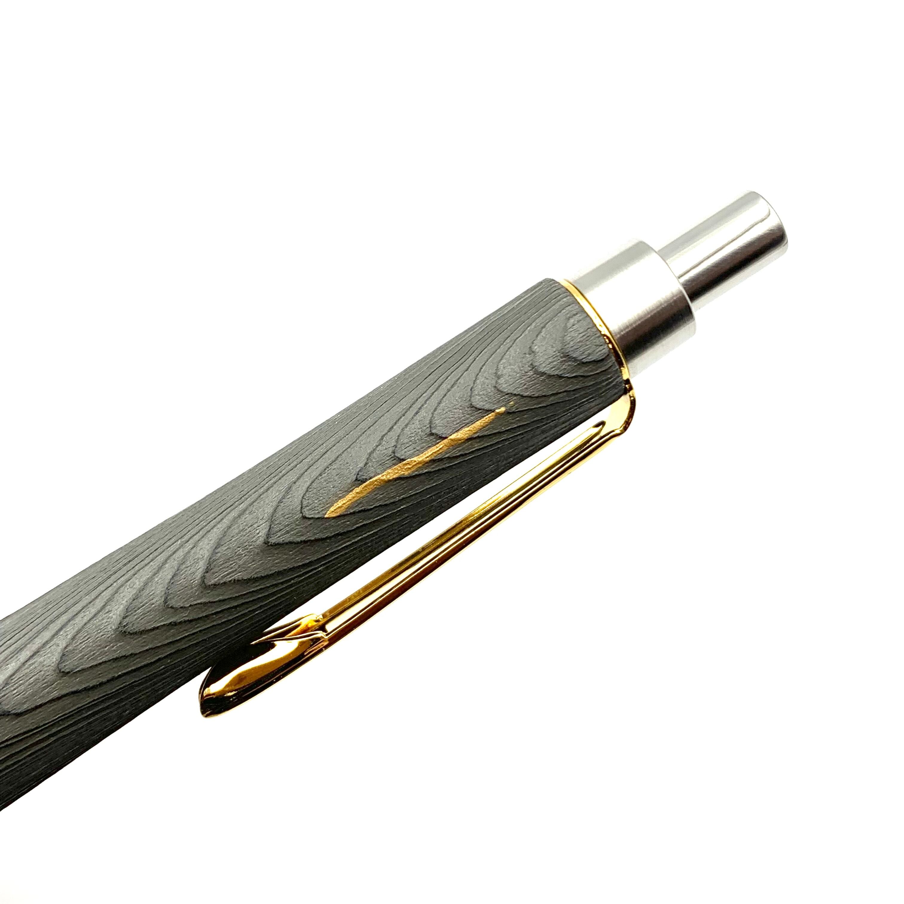 ・大阪の漆塗り職人さんの技術で、浮造りした屋久杉に色付けし大変希少な国産漆を、何度も塗り重ねて拭き取る(摺り漆)技法で仕上げたペンです。自然に割れてしまった部分には金粉と漆で修復した金継ぎが施されています。