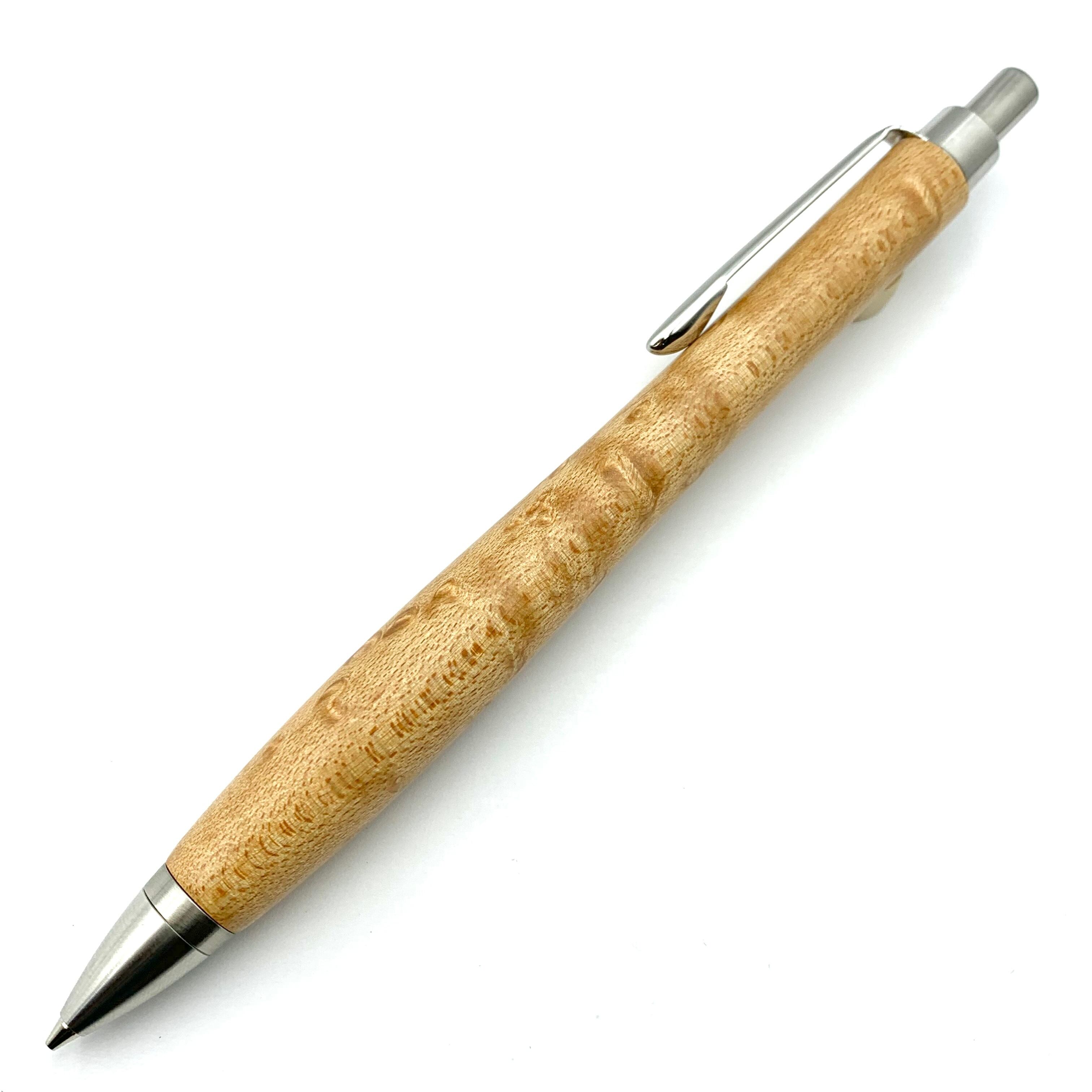 ペンシルは軸ブレが起こりにくい固定式口金を採用し、木の表情を最大限に楽しめる木軸の長さと、書き心地にこだわったバランスで金具を設計してあります。