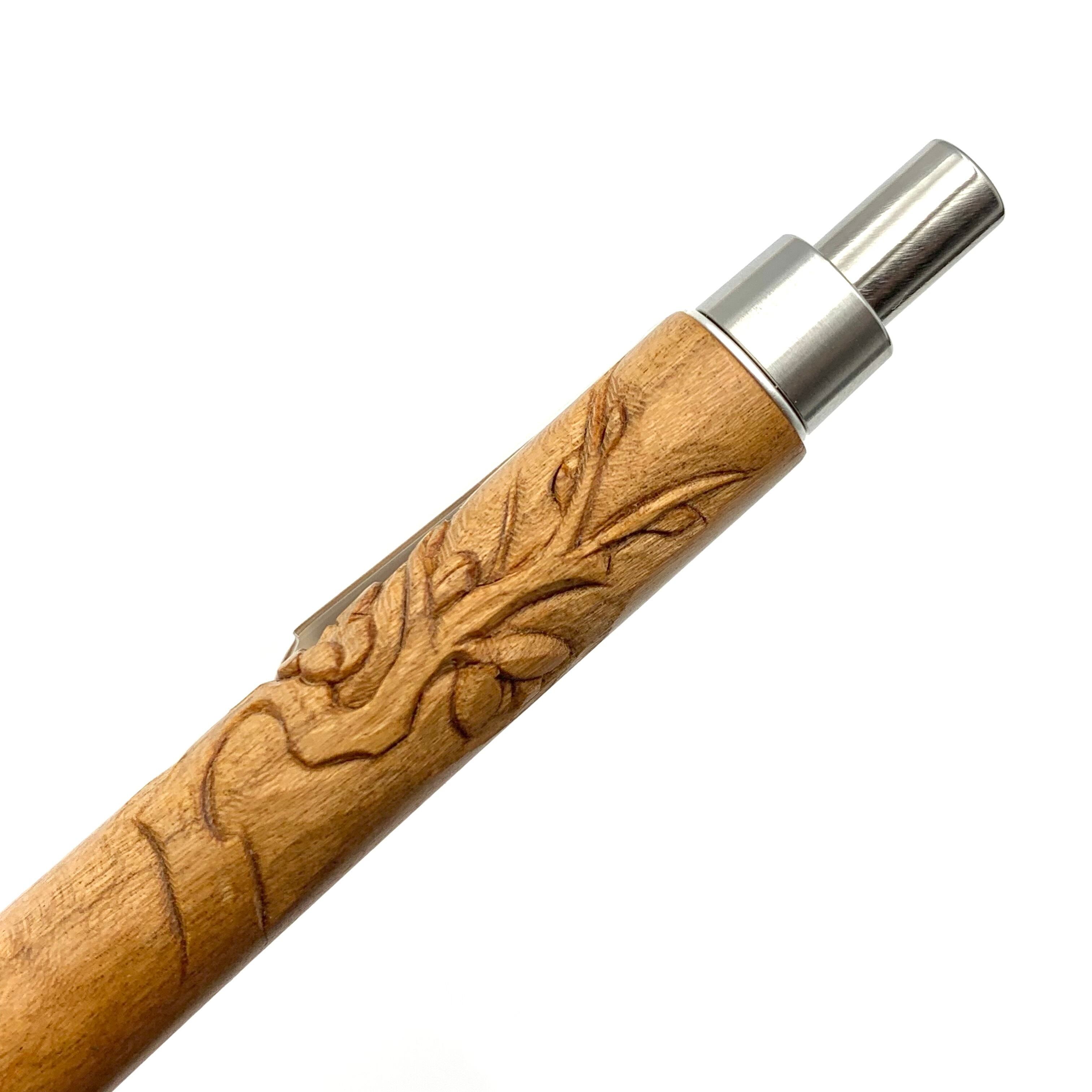 ペンシルは軸ブレが起こりにくい固定式口金を採用し、木の表情を最大限に楽しめる木軸の長さと、書き心地にこだわったバランスで金具を設計してあります。