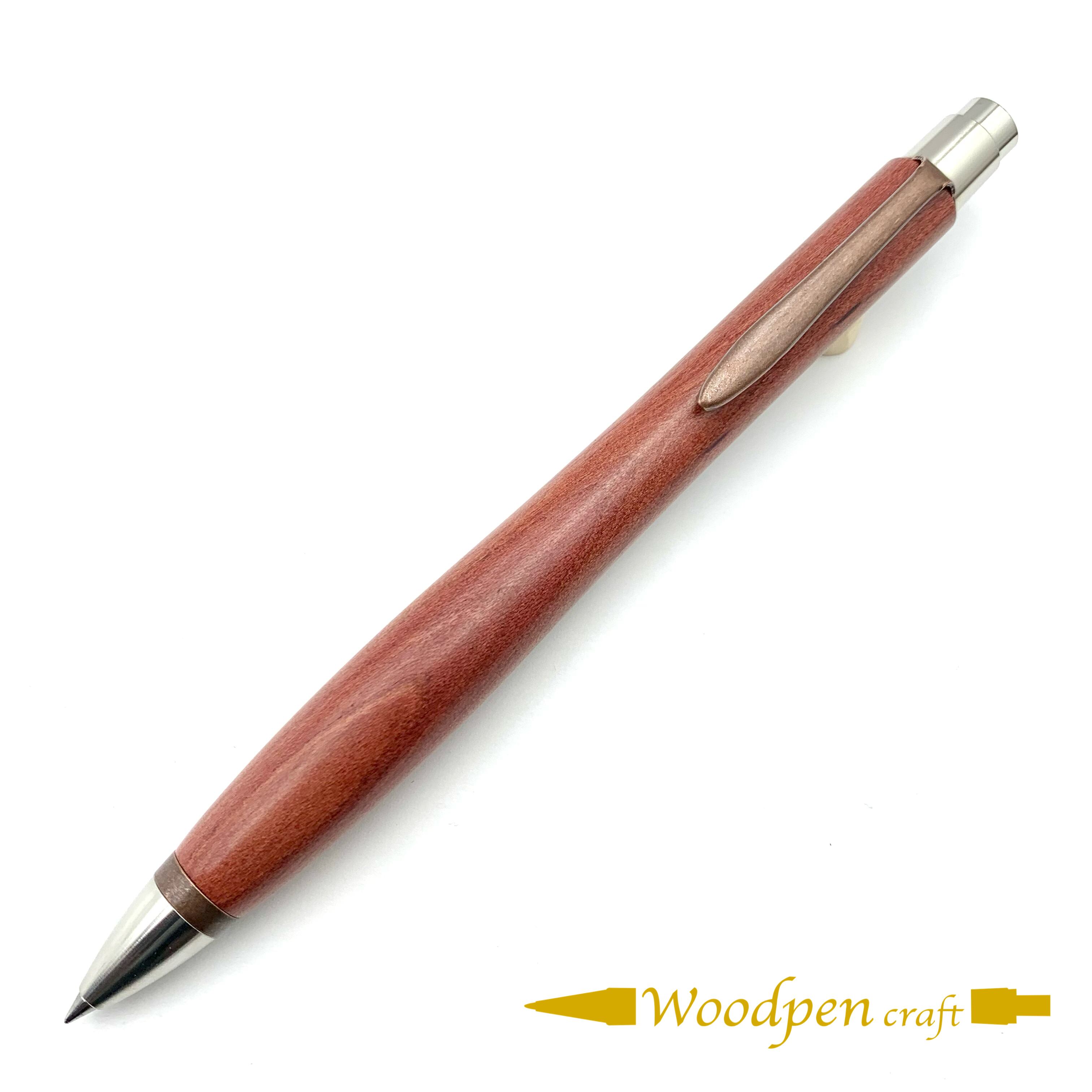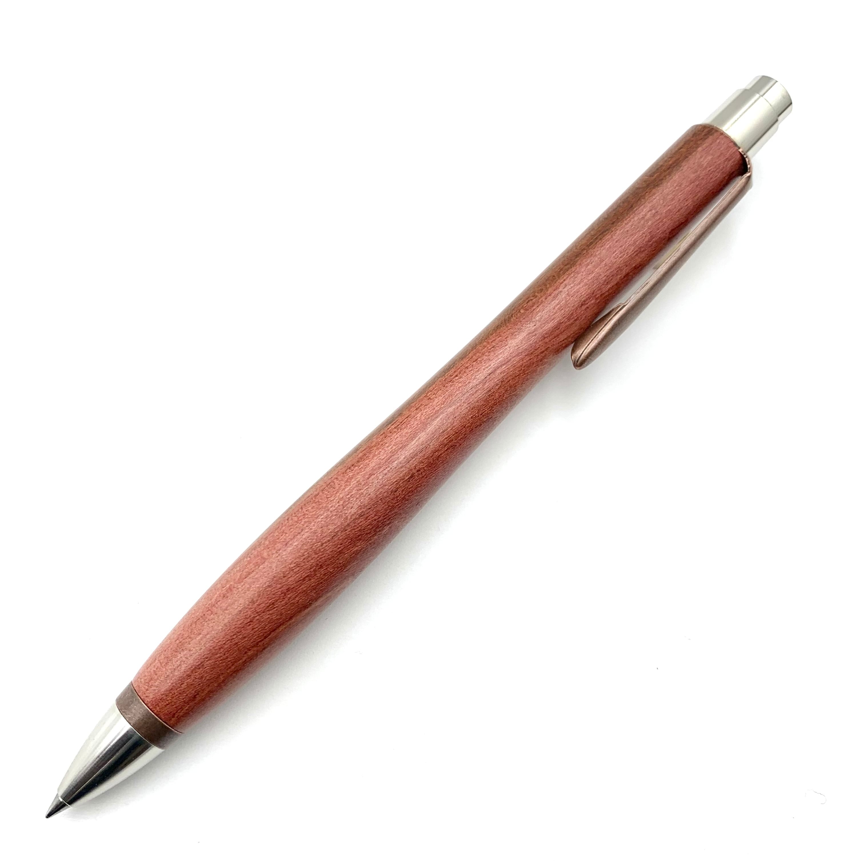 ボールペンのノックシステムは、ドイツ最高のクリックメカニズムを採用してあります。このメカニズムはユニークな機構のため、クリックしたときのカチカチ音が静かで、どんな場所でも気兼ねなく使うことができます。滑らかに動くこのプッシュ感覚を一度味わうと他には戻れなくなってしまうほどの魅力があります。 100分の1単位の加工精度で削り出されたペン先は、軸ブレも全くありません。