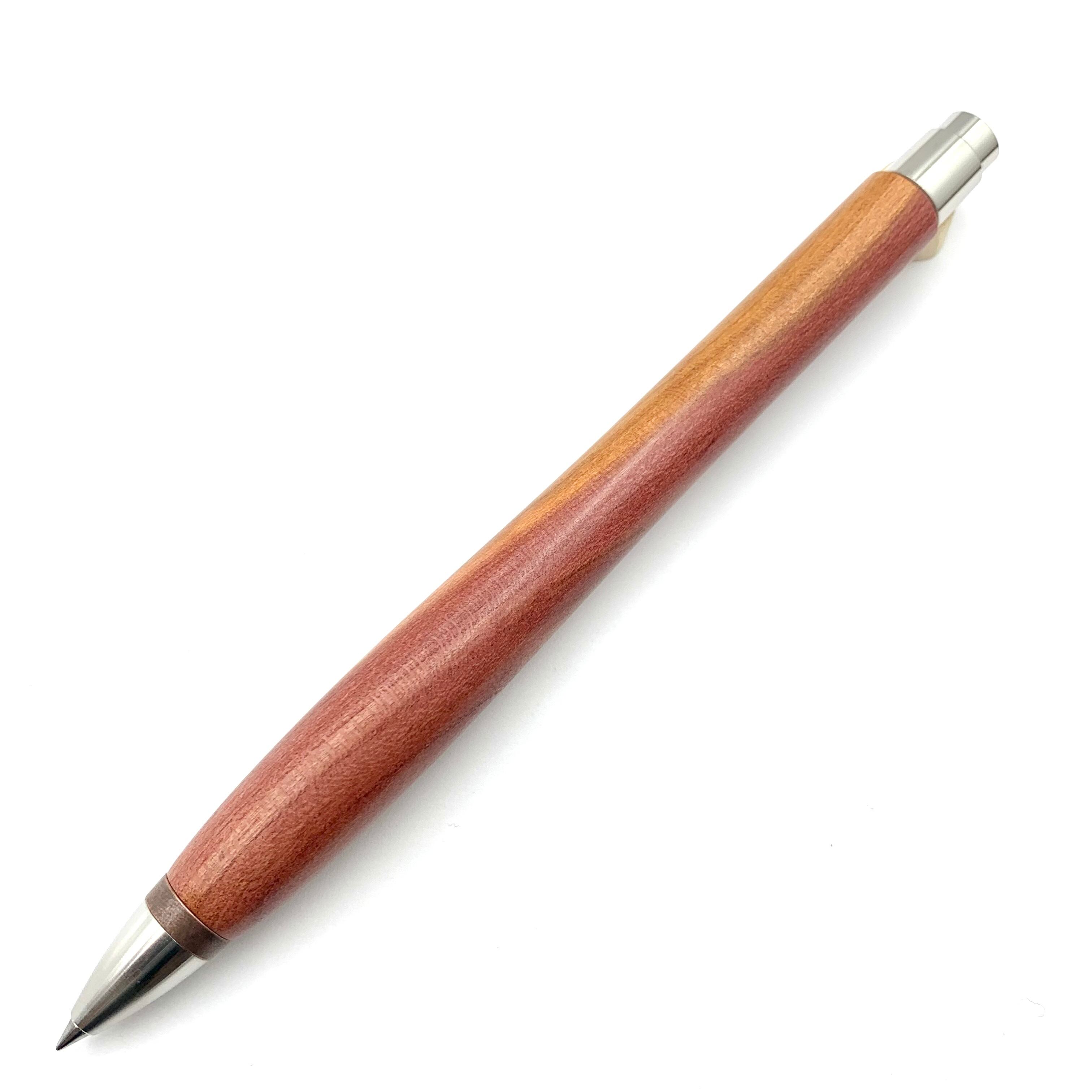 ボールペンのノックシステムは、ドイツ最高のクリックメカニズムを採用してあります。このメカニズムはユニークな機構のため、クリックしたときのカチカチ音が静かで、どんな場所でも気兼ねなく使うことができます。滑らかに動くこのプッシュ感覚を一度味わうと他には戻れなくなってしまうほどの魅力があります。 100分の1単位の加工精度で削り出されたペン先は、軸ブレも全くありません。