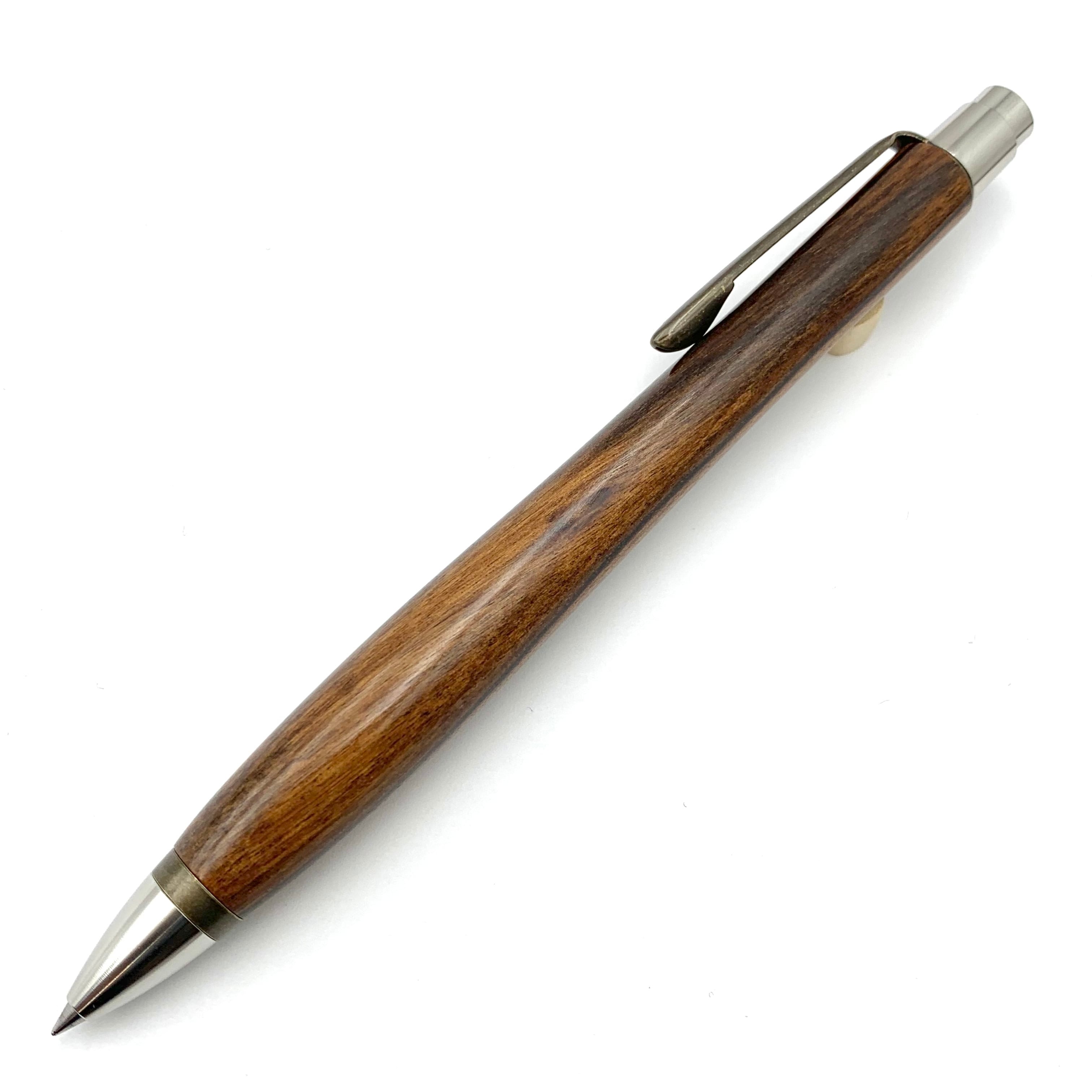 ボールペンのノックシステムは、ドイツ最高のクリックメカニズムを採用してあります。このメカニズムはユニークな機構のため、クリックしたときのカチカチ音が静かで、どんな場所でも気兼ねなく使うことができます。滑らかに動くこのプッシュ感覚を一度味わうと他には戻れなくなってしまうほどの魅力があります。 精密内部構造と高級ステンレス材を100分の1単位の加工精度で削り出された口金により芯ブレも全くありません。
