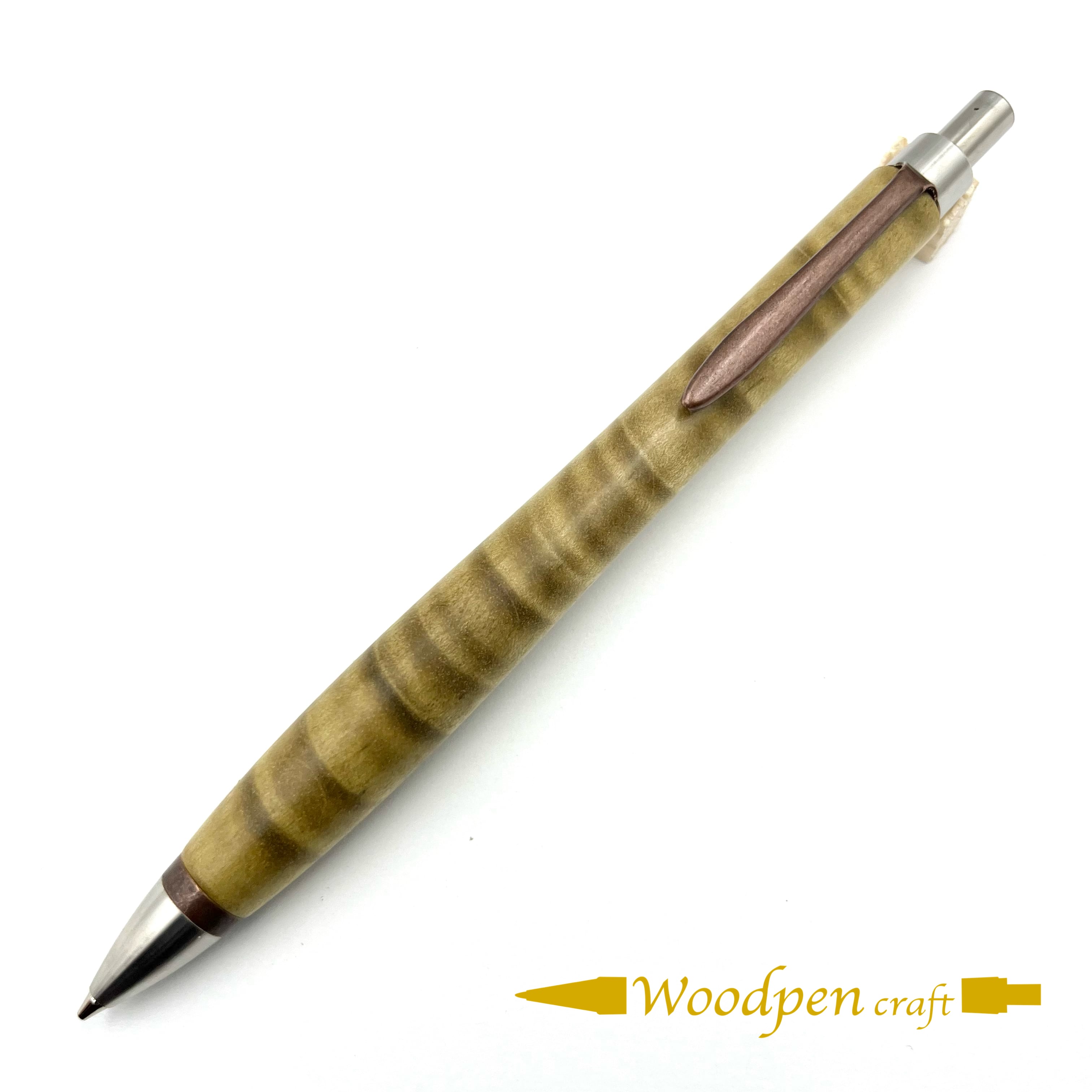 ペンシルは軸ブレが起こりにくい固定式口金を採用し、木の表情を最大限に楽しめる木軸の長さと、書き心地にこだわったバランスで金具を設計してあります。