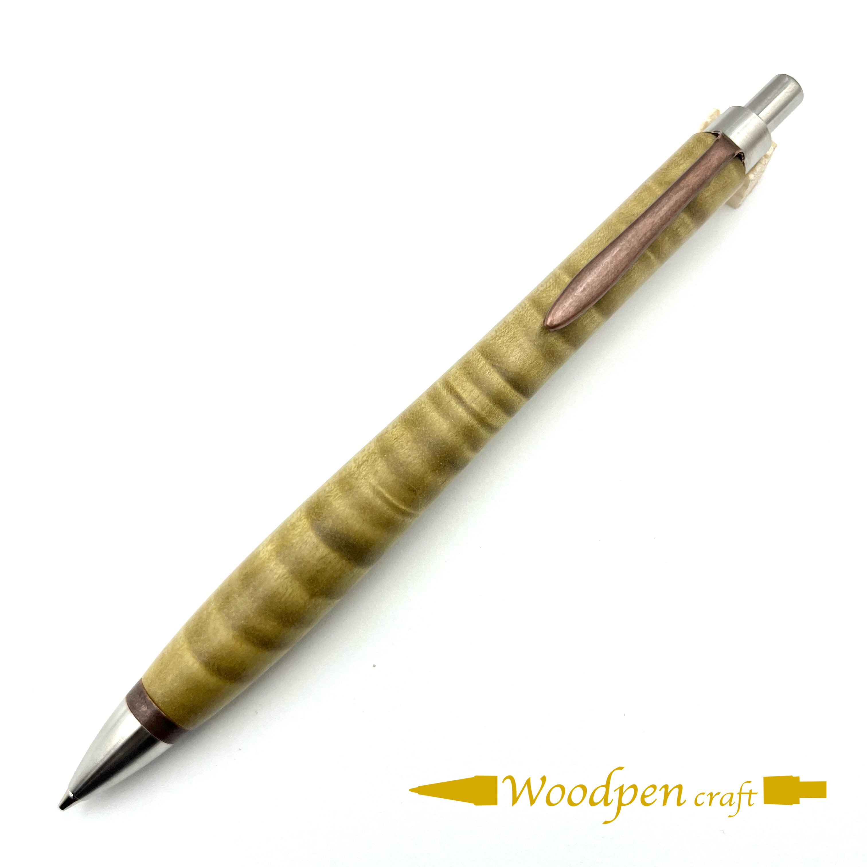 ペンシルは軸ブレが起こりにくい固定式口金を採用し、木の表情を最大限に楽しめる木軸の長さと、書き心地にこだわったバランスで金具を設計してあります。