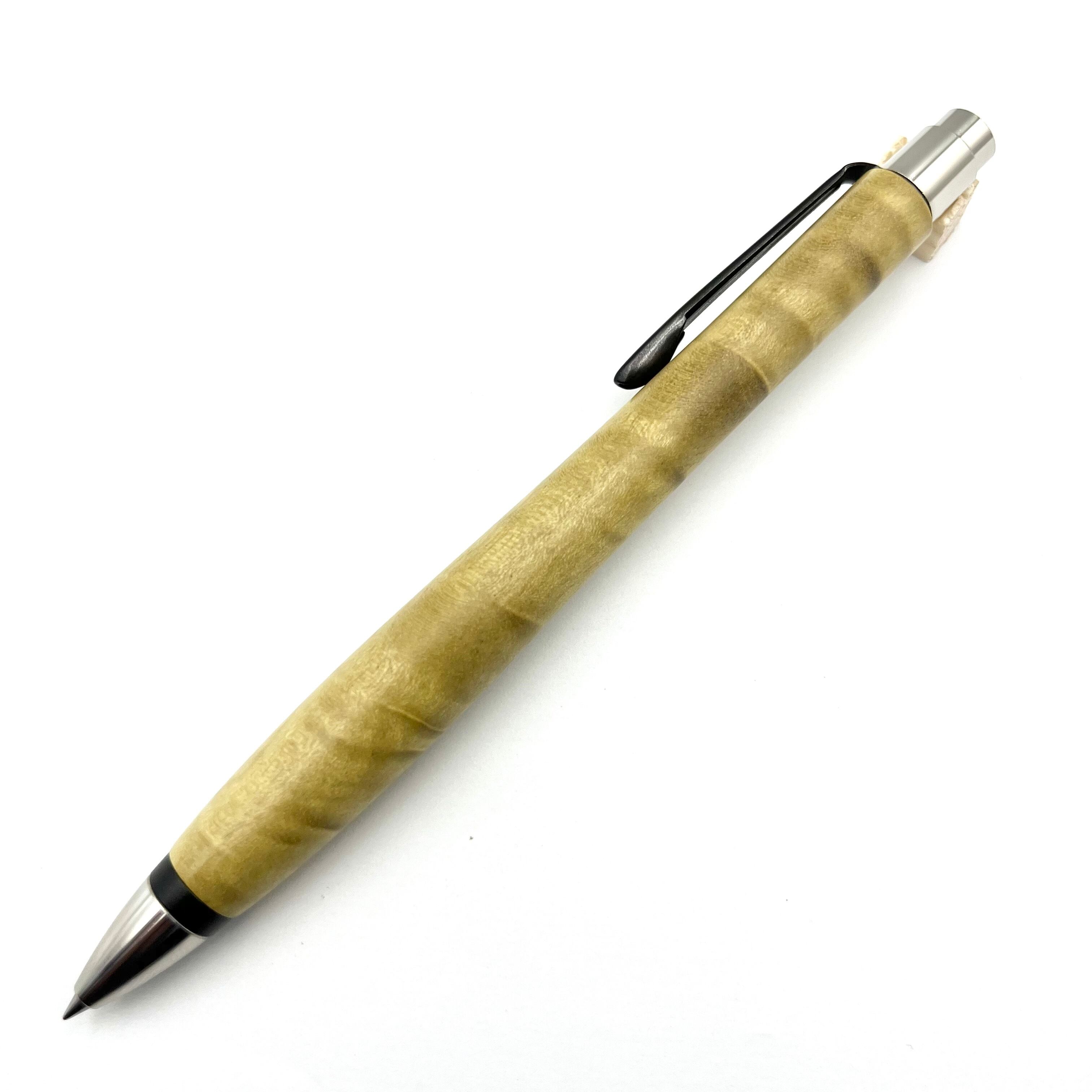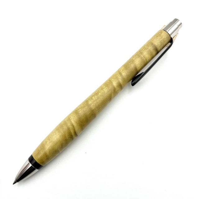ボールペンのノックシステムは、ドイツ最高のクリックメカニズムを採用してあります。このメカニズムはユニークな機構のため、クリックしたときのカチカチ音が静かで、どんな場所でも気兼ねなく使うことができます。滑らかに動くこのプッシュ感覚を一度味わうと他には戻れなくなってしまうほどの魅力があります。 精密内部構造と高級ステンレス材を100分の1単位の加工精度で削り出された口金により芯ブレも全くありません。