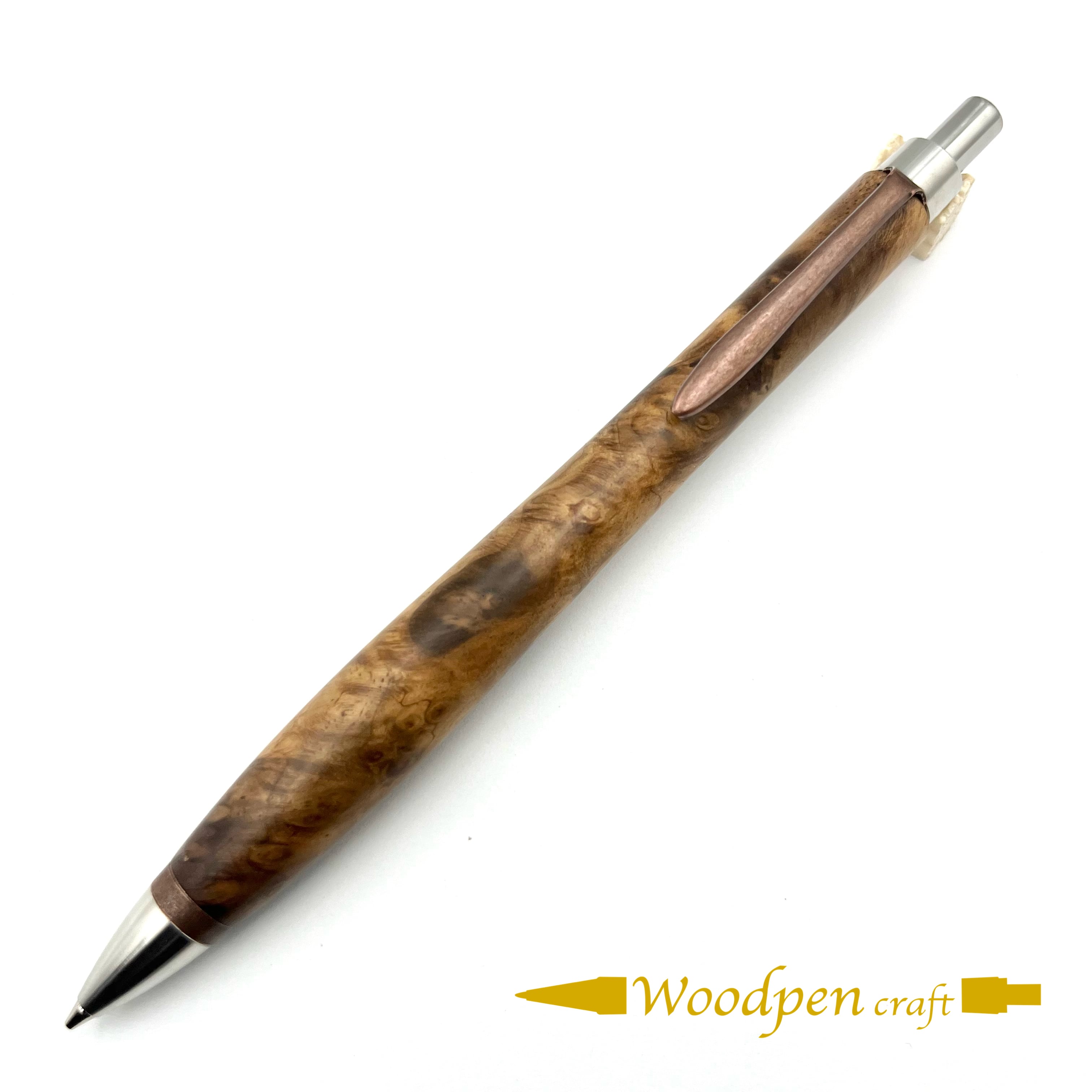 ペンシルは軸ブレが起こりにくい固定式口金を採用し、木の表情を最大限に楽しめる木軸の長さと、書き心地にこだわったバランスで金具を設計してあります。