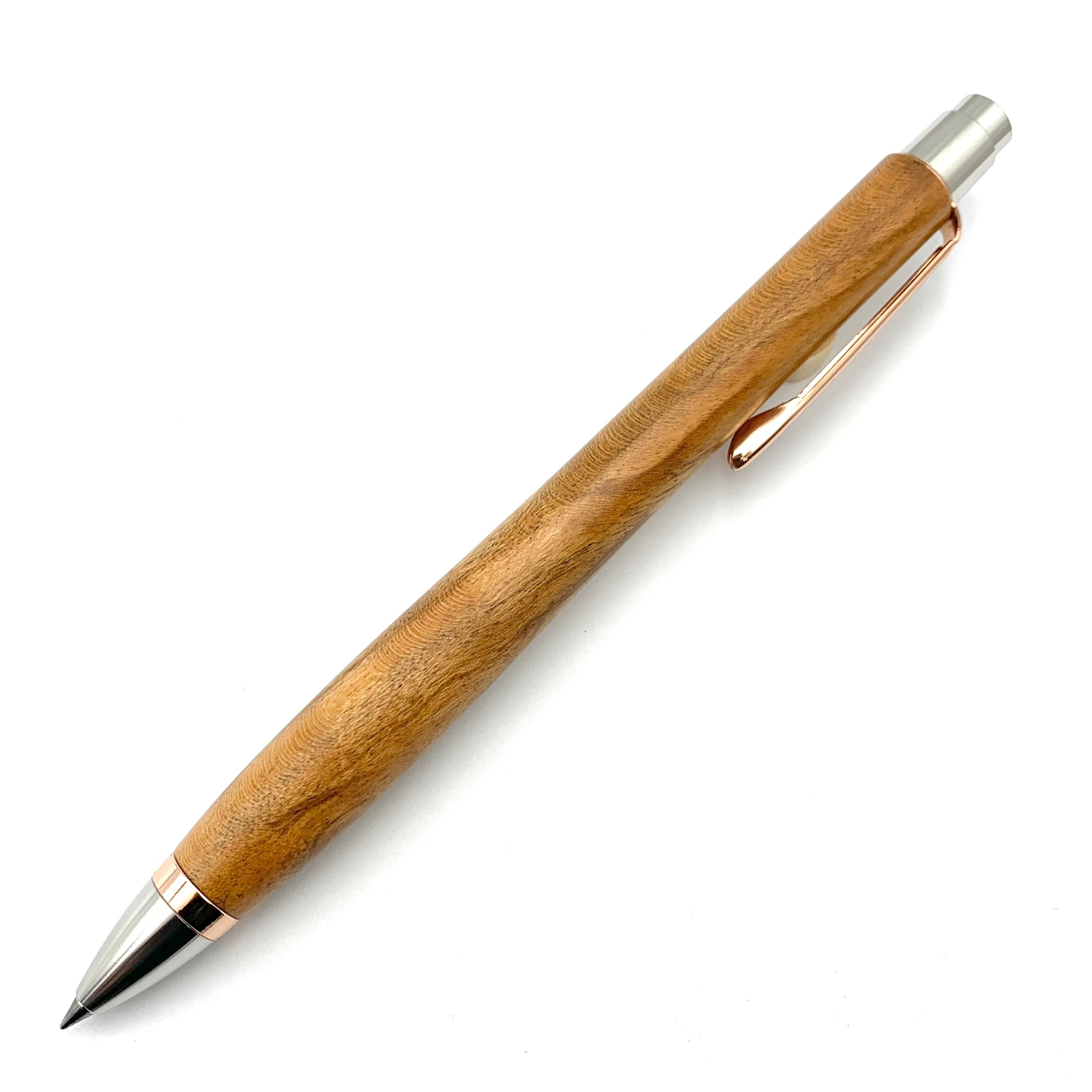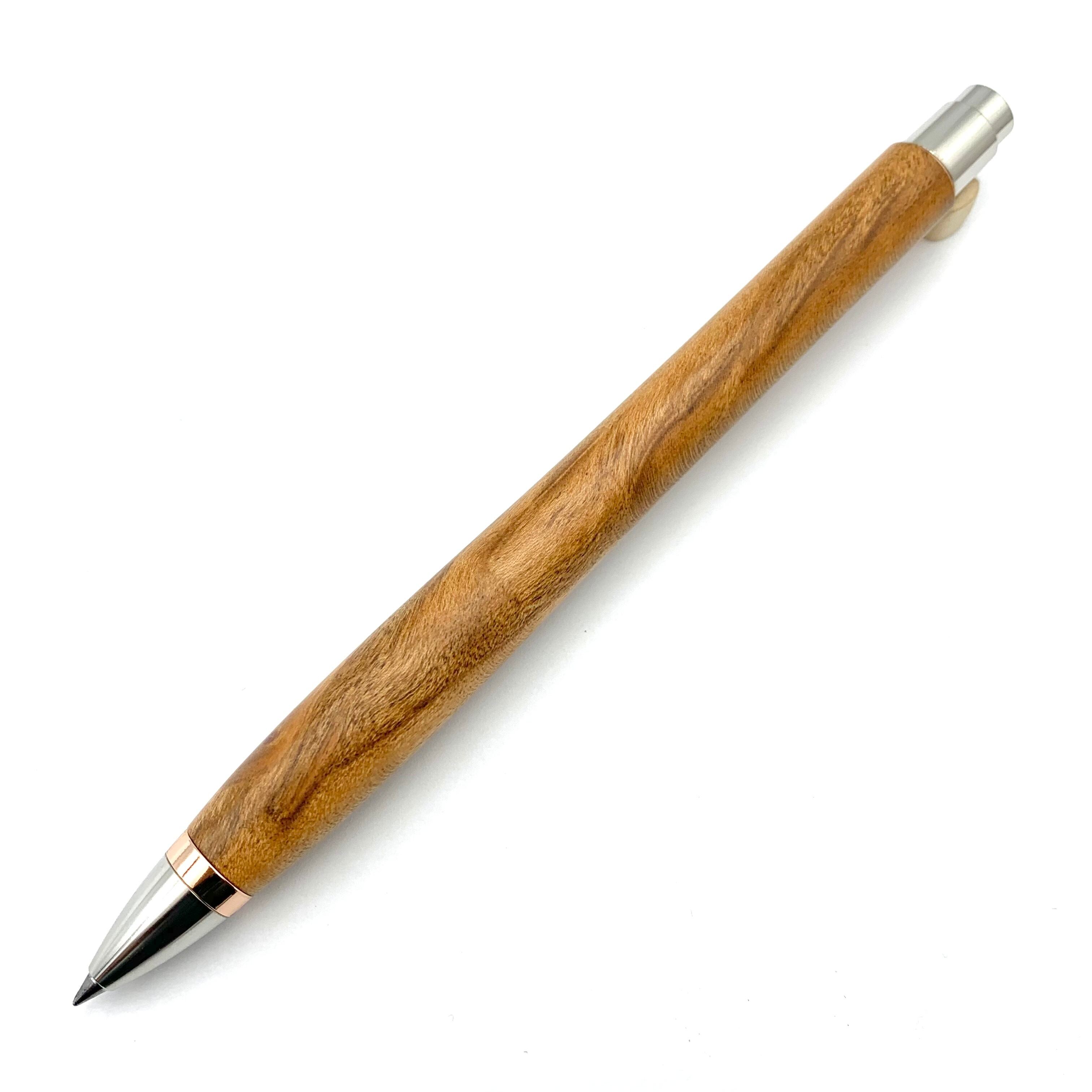 ボールペンのノックシステムは、ドイツ最高のクリックメカニズムを採用してあります。このメカニズムはユニークな機構のため、クリックしたときのカチカチ音が静かで、どんな場所でも気兼ねなく使うことができます。滑らかに動くこのプッシュ感覚を一度味わうと他には戻れなくなってしまうほどの魅力があります。 精密内部構造と高級ステンレス材を100分の1単位の加工精度で削り出された口金により芯ブレも全くありません。