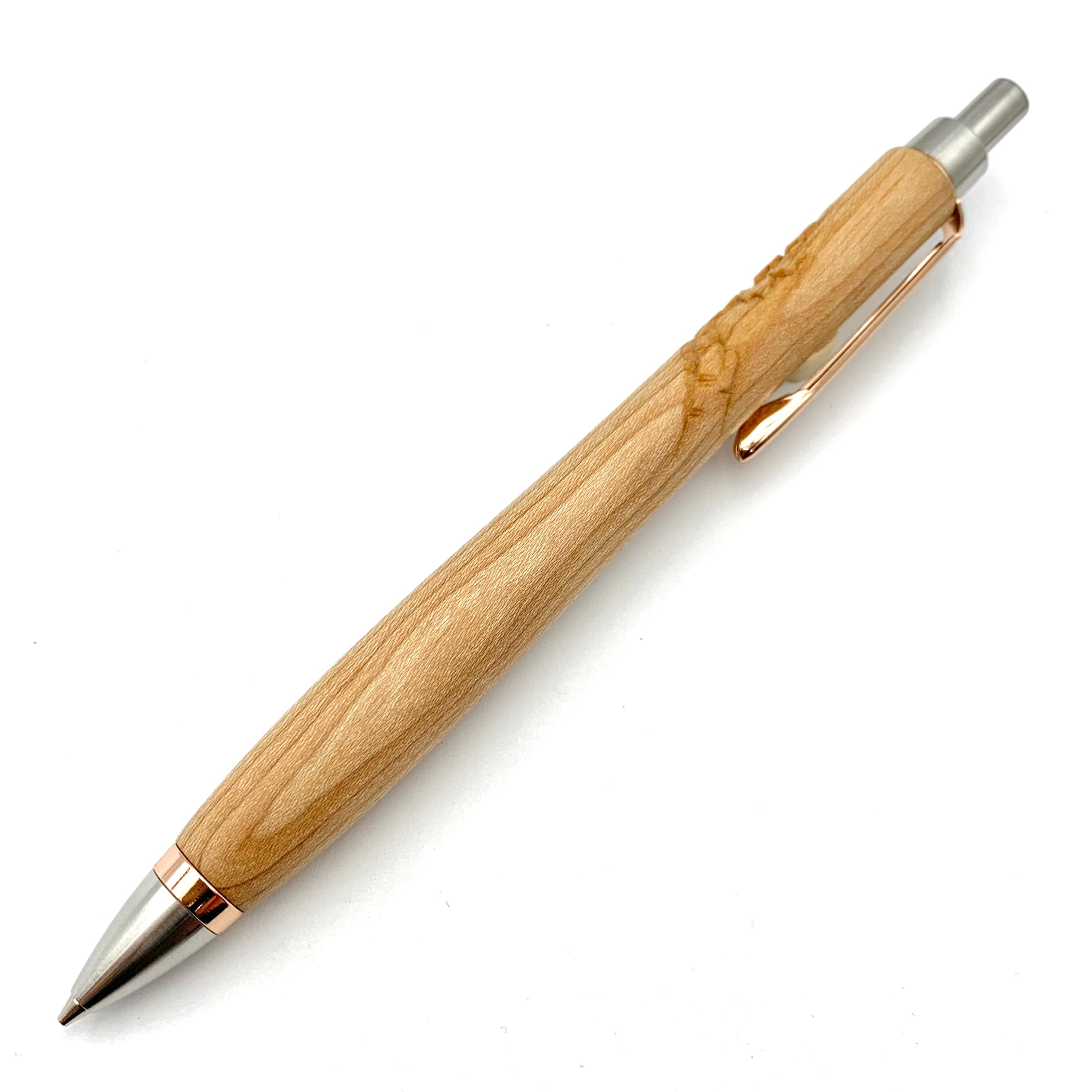 ペンシルは軸ブレが起こりにくい固定式口金を採用し、木の表情を最大限に楽しめる木軸の長さと、書き心地にこだわったバランスで金具を設計してあります。