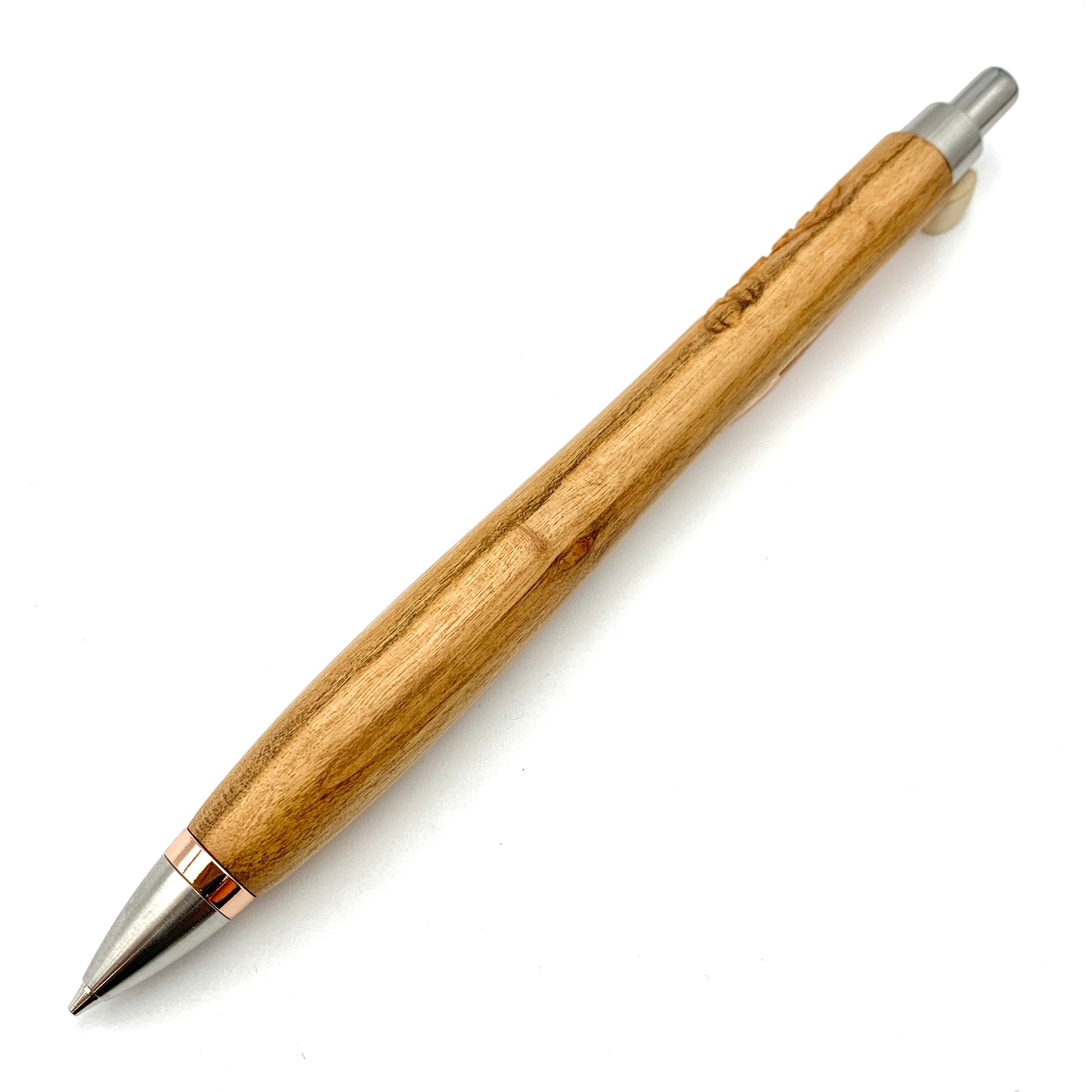 ペンシルは軸ブレが起こりにくい固定式口金を採用し、木の表情を最大限に楽しめる木軸の長さと、書き心地にこだわったバランスで金具を設計してあります。