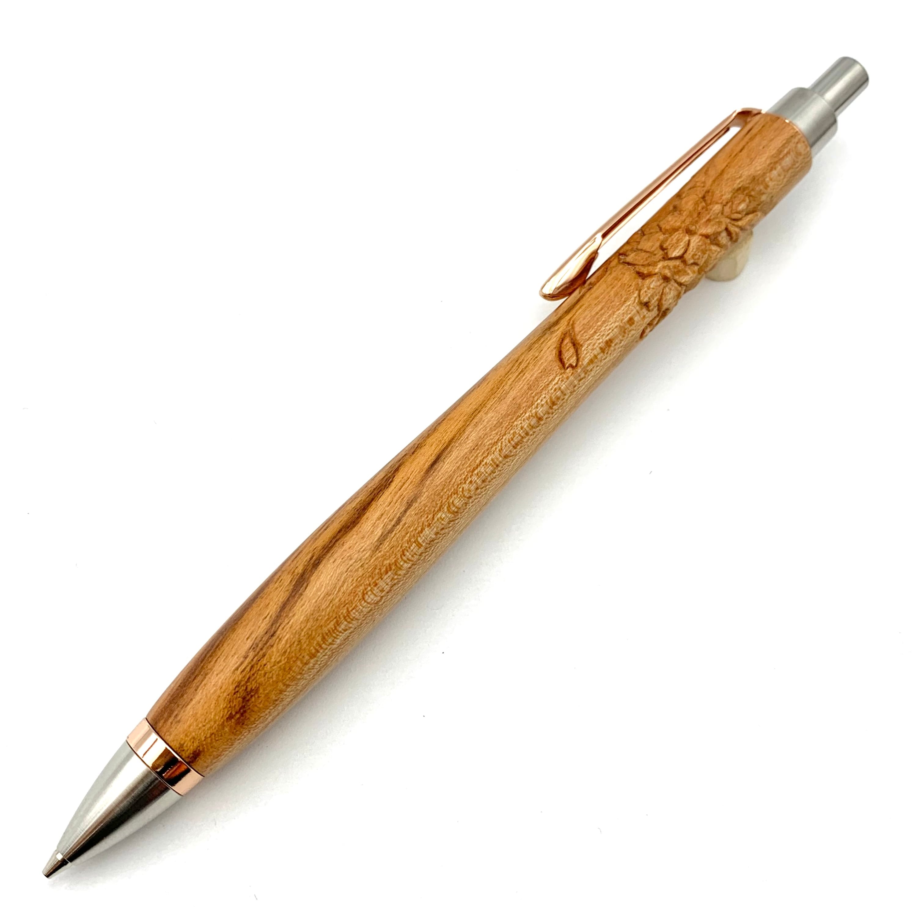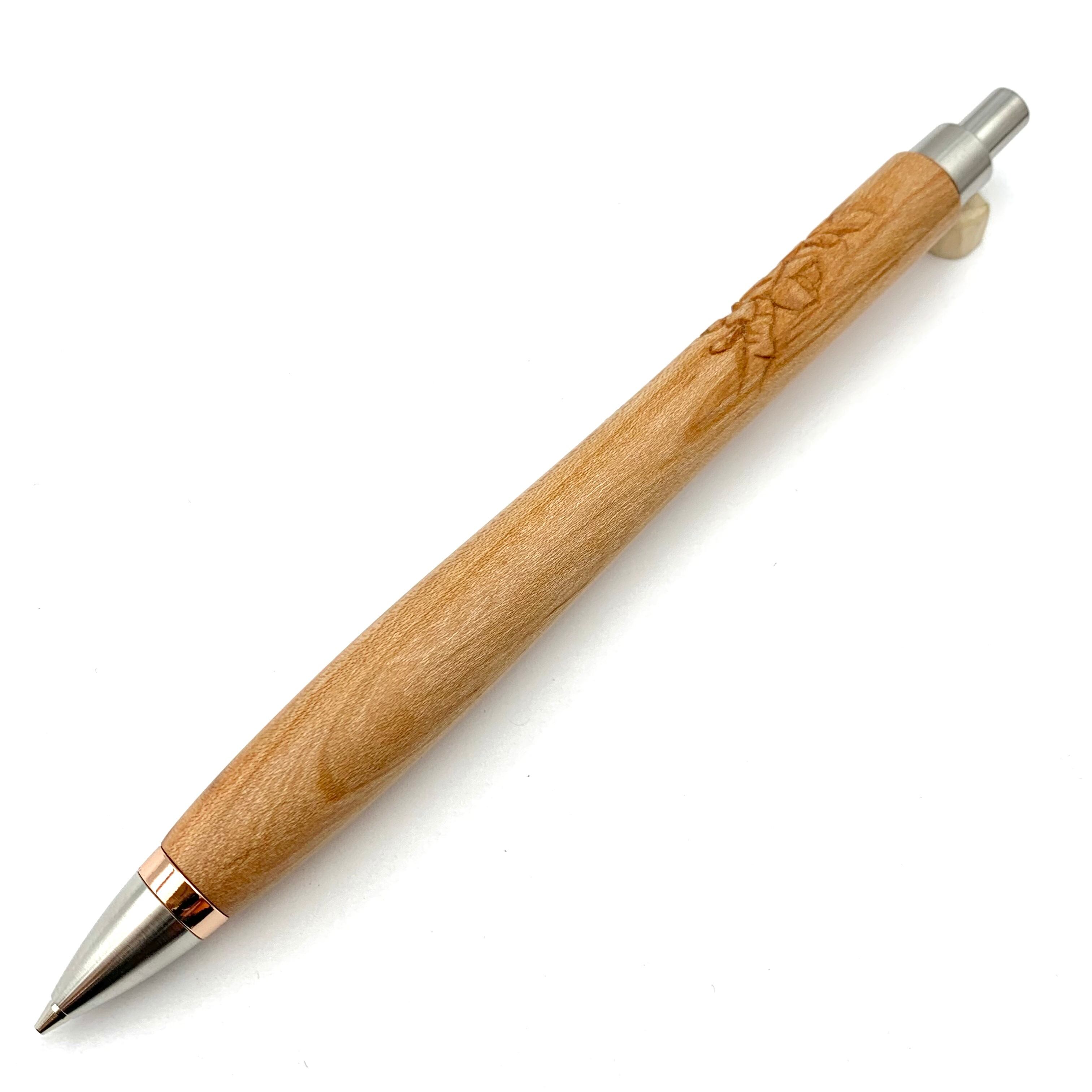 ペンシルは軸ブレが起こりにくい固定式口金を採用し、木の表情を最大限に楽しめる木軸の長さと、書き心地にこだわったバランスで金具を設計してあります。