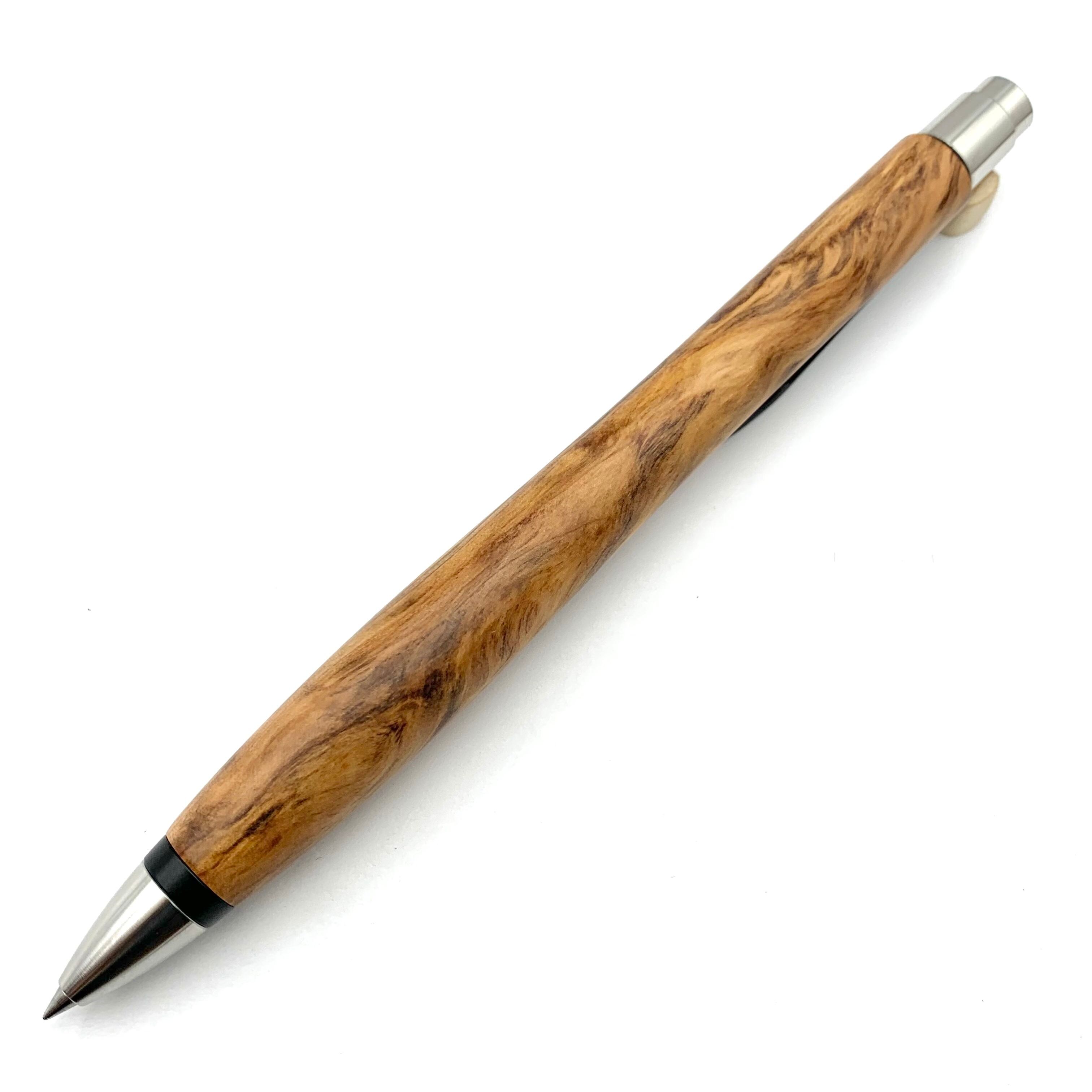 ボールペンのノックシステムは、ドイツ最高のクリックメカニズムを採用してあります。このメカニズムはユニークな機構のため、クリックしたときのカチカチ音が静かで、どんな場所でも気兼ねなく使うことができます。滑らかに動くこのプッシュ感覚を一度味わうと他には戻れなくなってしまうほどの魅力があります。 精密内部構造と高級ステンレス材を100分の1単位の加工精度で削り出された口金により芯ブレも全くありません。