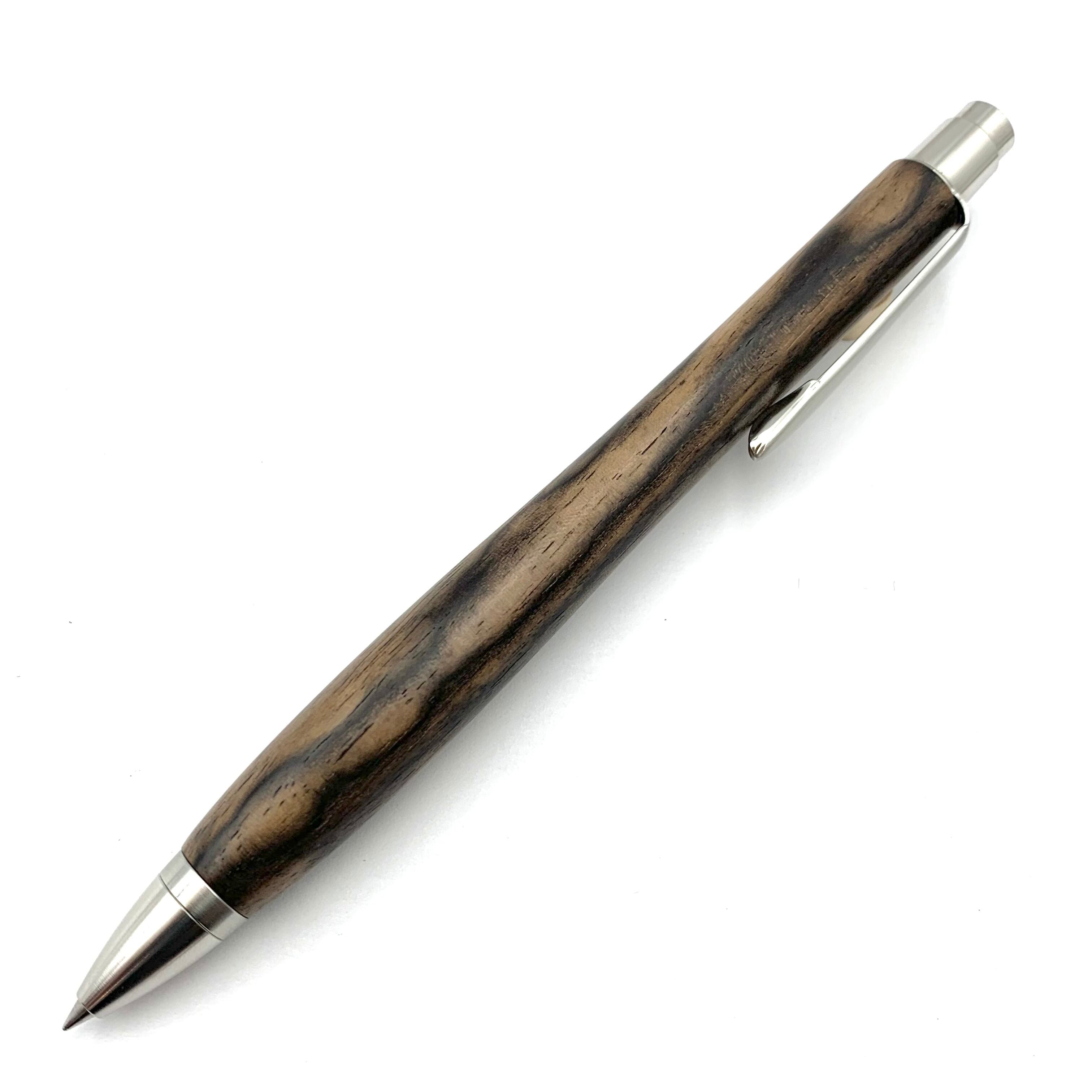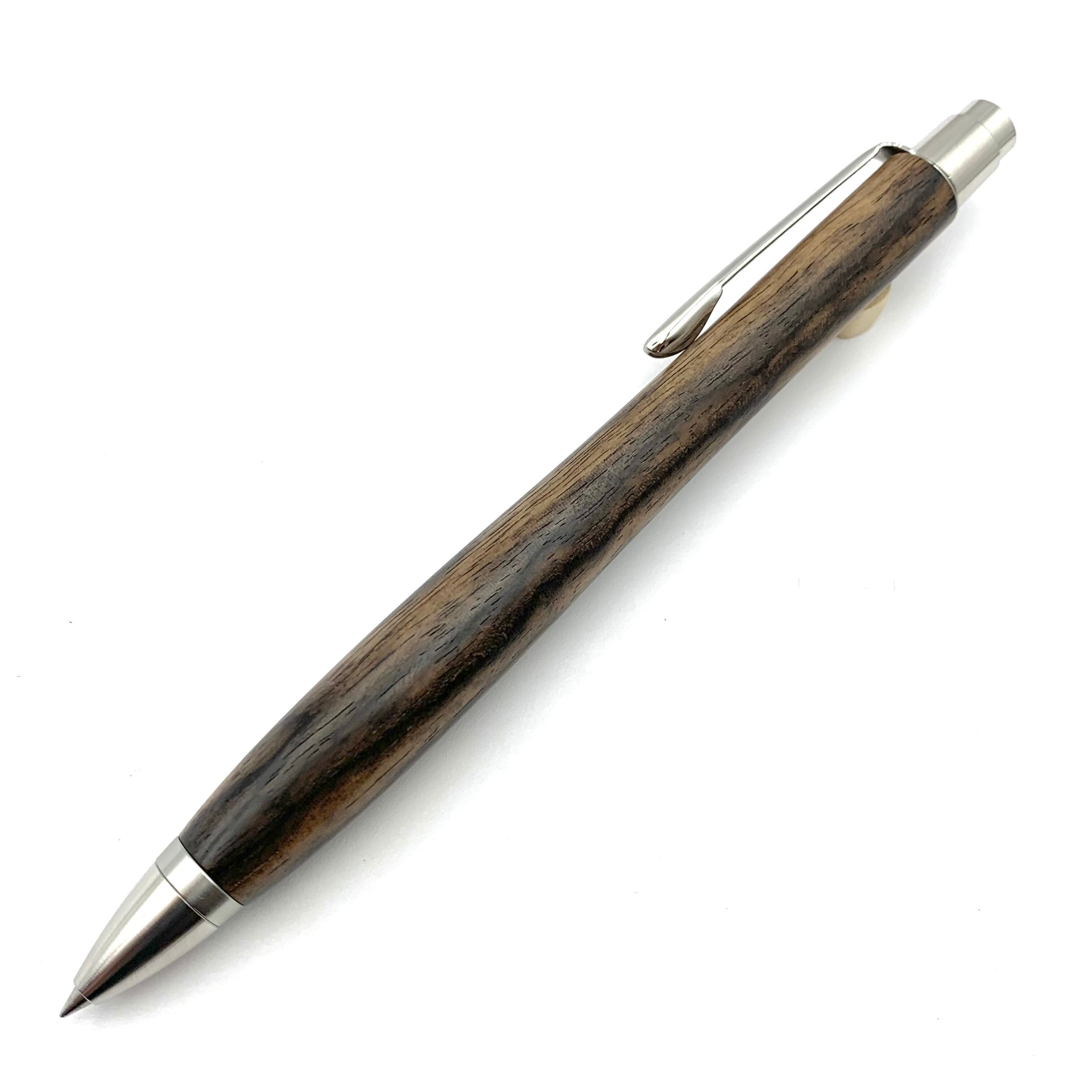 ボールペンのノックシステムは、ドイツ最高のクリックメカニズムを採用してあります。このメカニズムはユニークな機構のため、クリックしたときのカチカチ音が静かで、どんな場所でも気兼ねなく使うことができます。滑らかに動くこのプッシュ感覚を一度味わうと他には戻れなくなってしまうほどの魅力があります。 精密内部構造と高級ステンレス材を100分の1単位の加工精度で削り出された口金により芯ブレも全くありません。