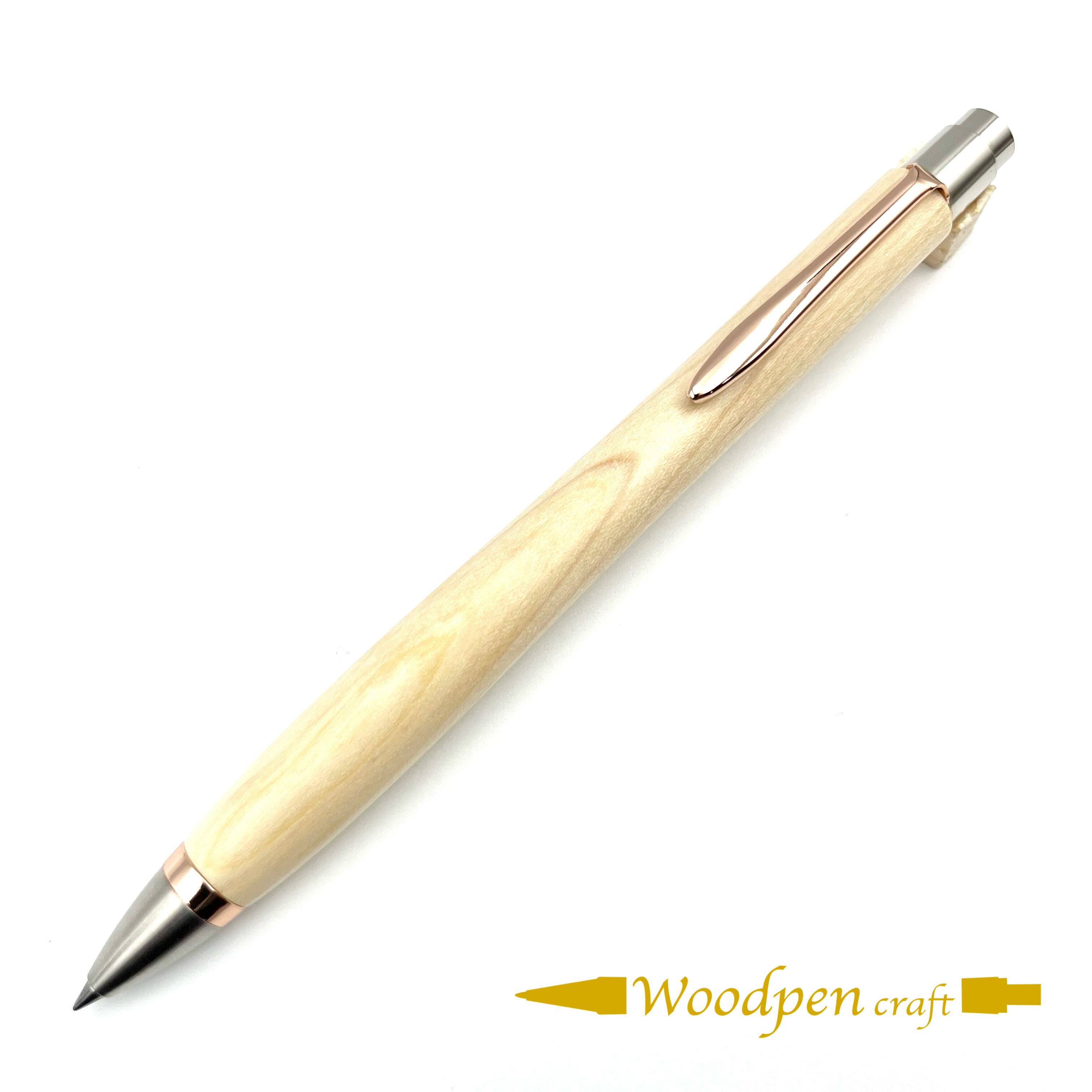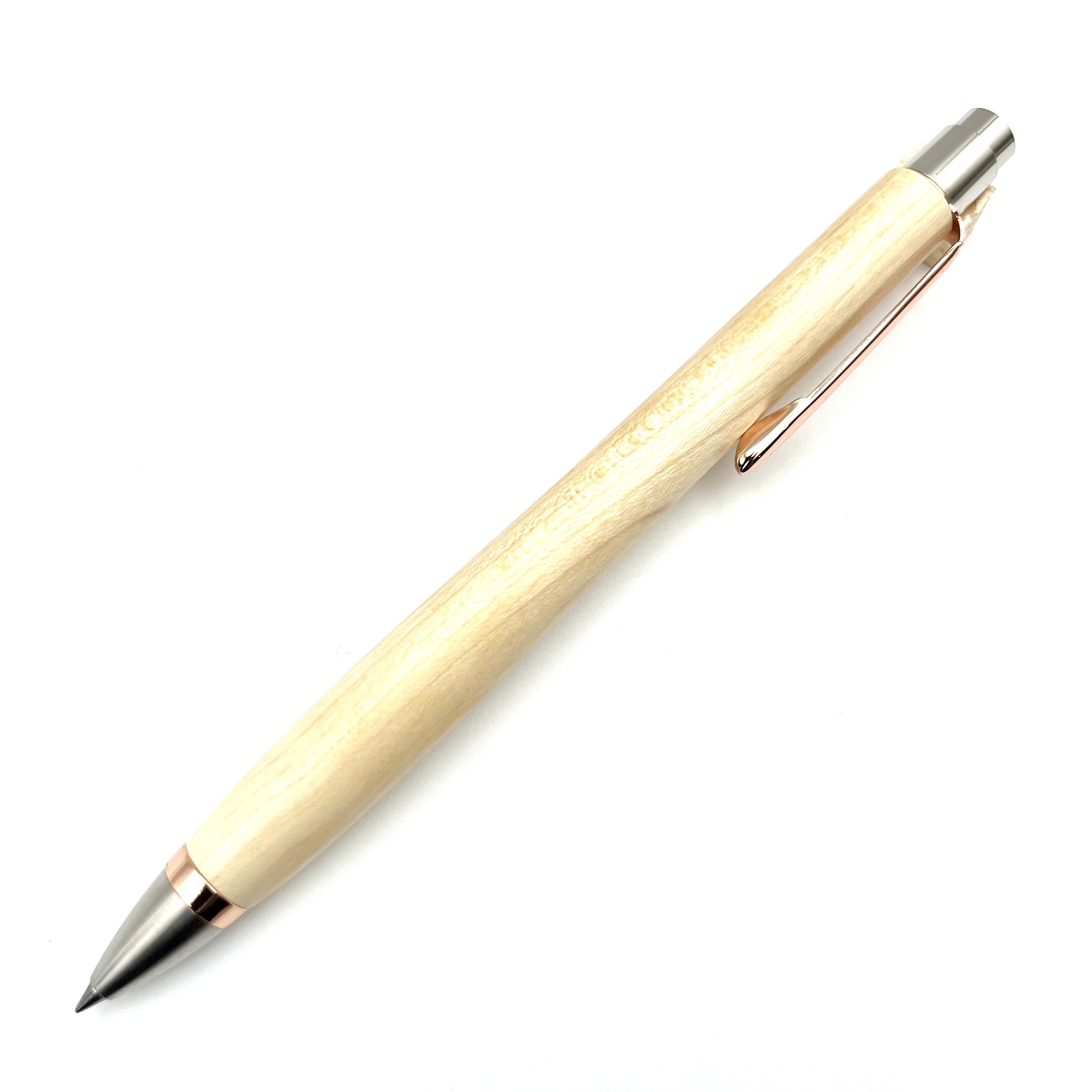 ボールペンのノックシステムは、ドイツ最高のクリックメカニズムを採用してあります。このメカニズムはユニークな機構のため、クリックしたときのカチカチ音が静かで、どんな場所でも気兼ねなく使うことができます。滑らかに動くこのプッシュ感覚を一度味わうと他には戻れなくなってしまうほどの魅力があります。 精密内部構造と高級ステンレス材を100分の1単位の加工精度で削り出された口金により芯ブレも全くありません。