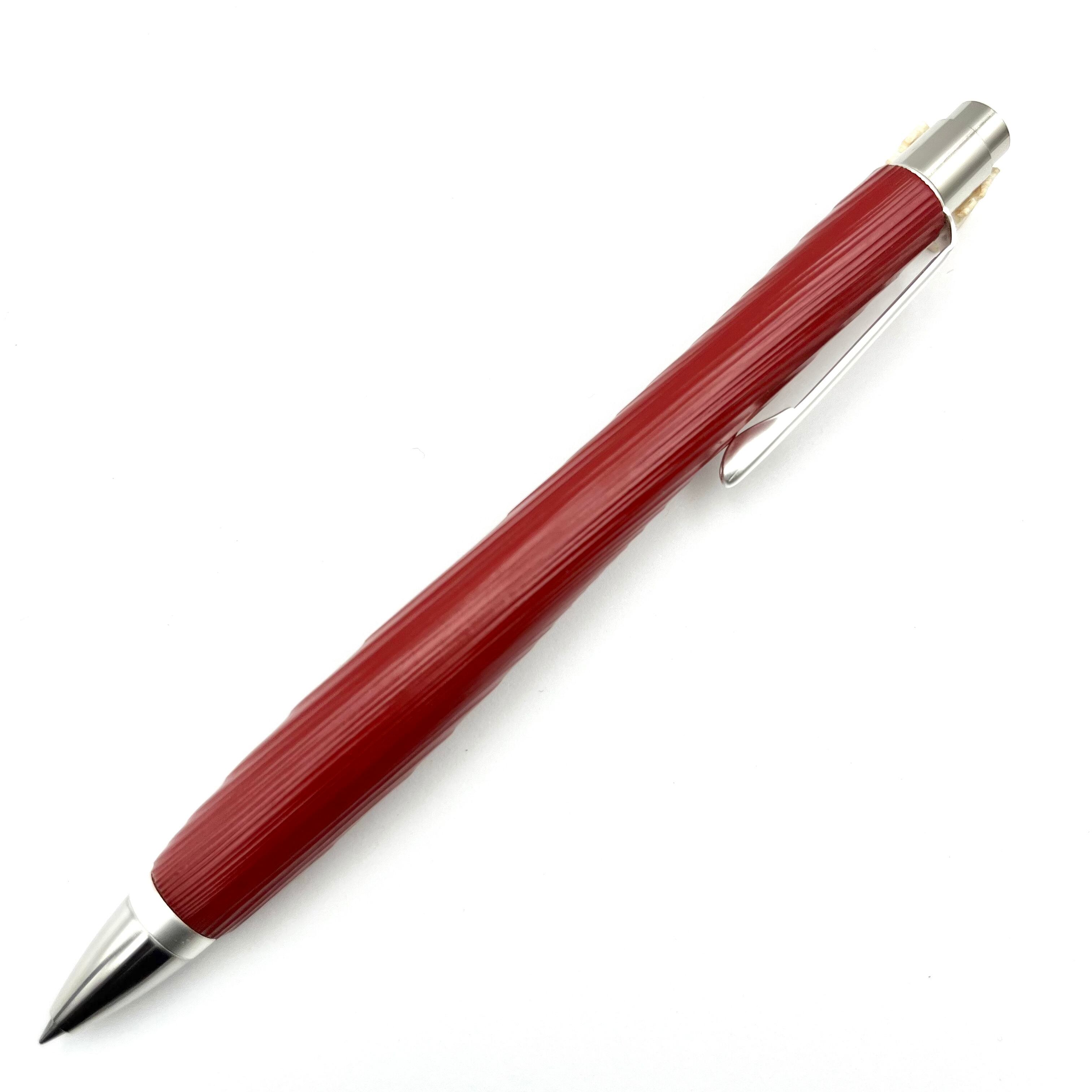 ボールペンのノックシステムは、ドイツ最高のクリックメカニズムを採用してあります。このメカニズムはユニークな機構のため、クリックしたときのカチカチ音が静かで、どんな場所でも気兼ねなく使うことができます。滑らかに動くこのプッシュ感覚を一度味わうと他には戻れなくなってしまうほどの魅力があります。 精密内部構造と高級ステンレス材を100分の1単位の加工精度で削り出された口金により芯ブレも全くありません。