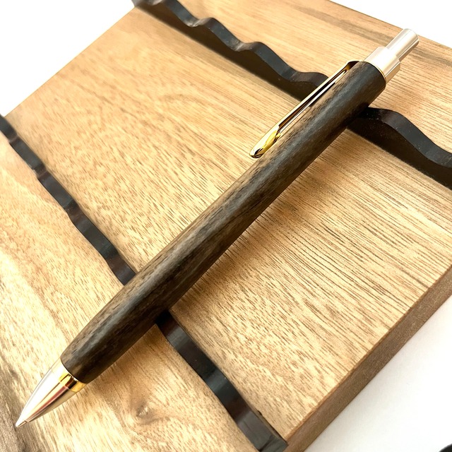 オリジナルペン金具は、大阪に在る金属精密加工会社の職人さんが100分の1㎜単位の加工精度で制作されています。口金・上スリーブ・ノックカバーは高級ステンレス削り出しです。
