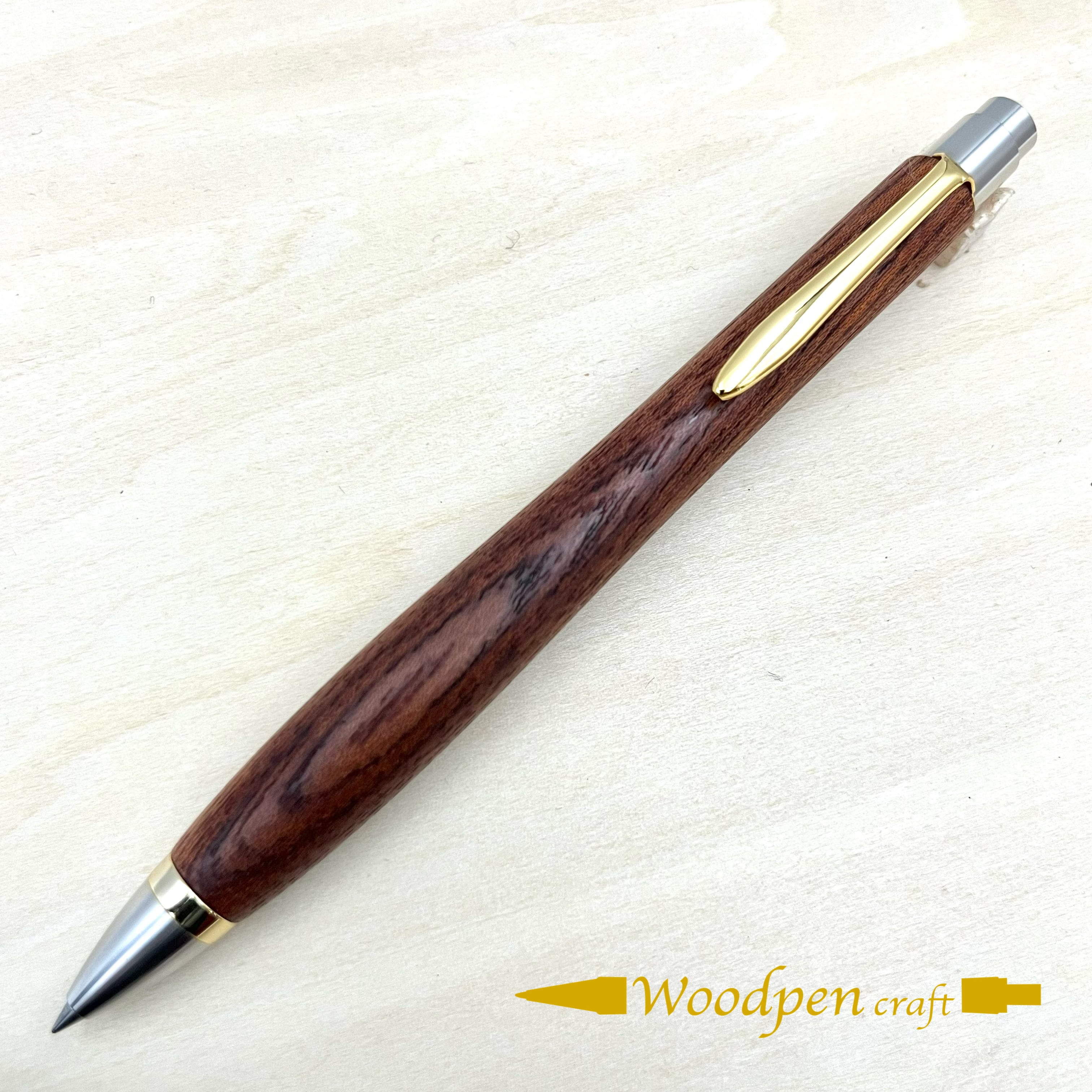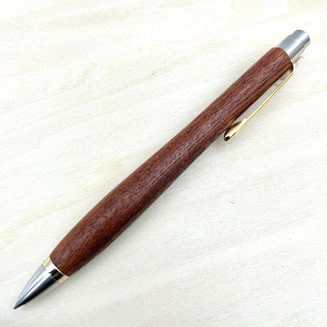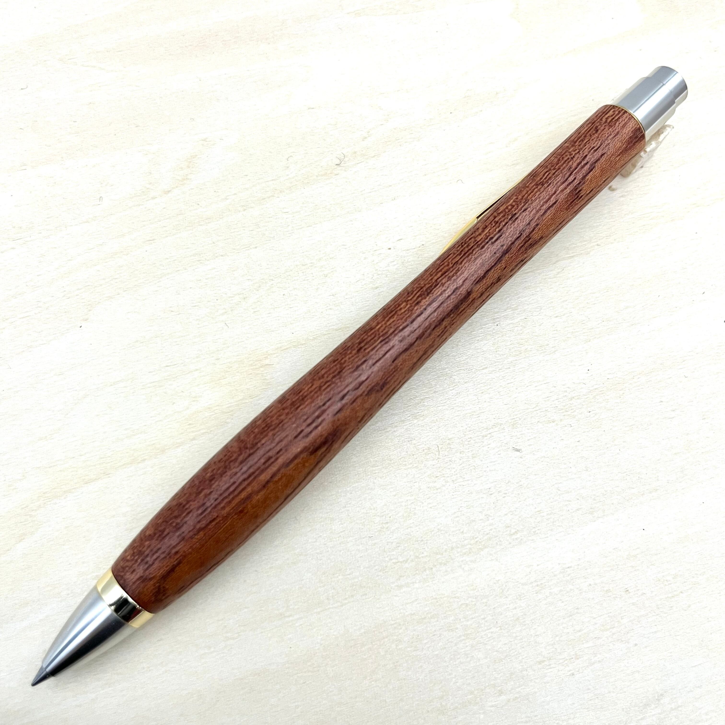 ペンに使った木は、推定50年以上も前に雷に打たれた大枝を強剪定したもので、巨木と雷の影響で普通の欅と色合いが全く違い濃いです。