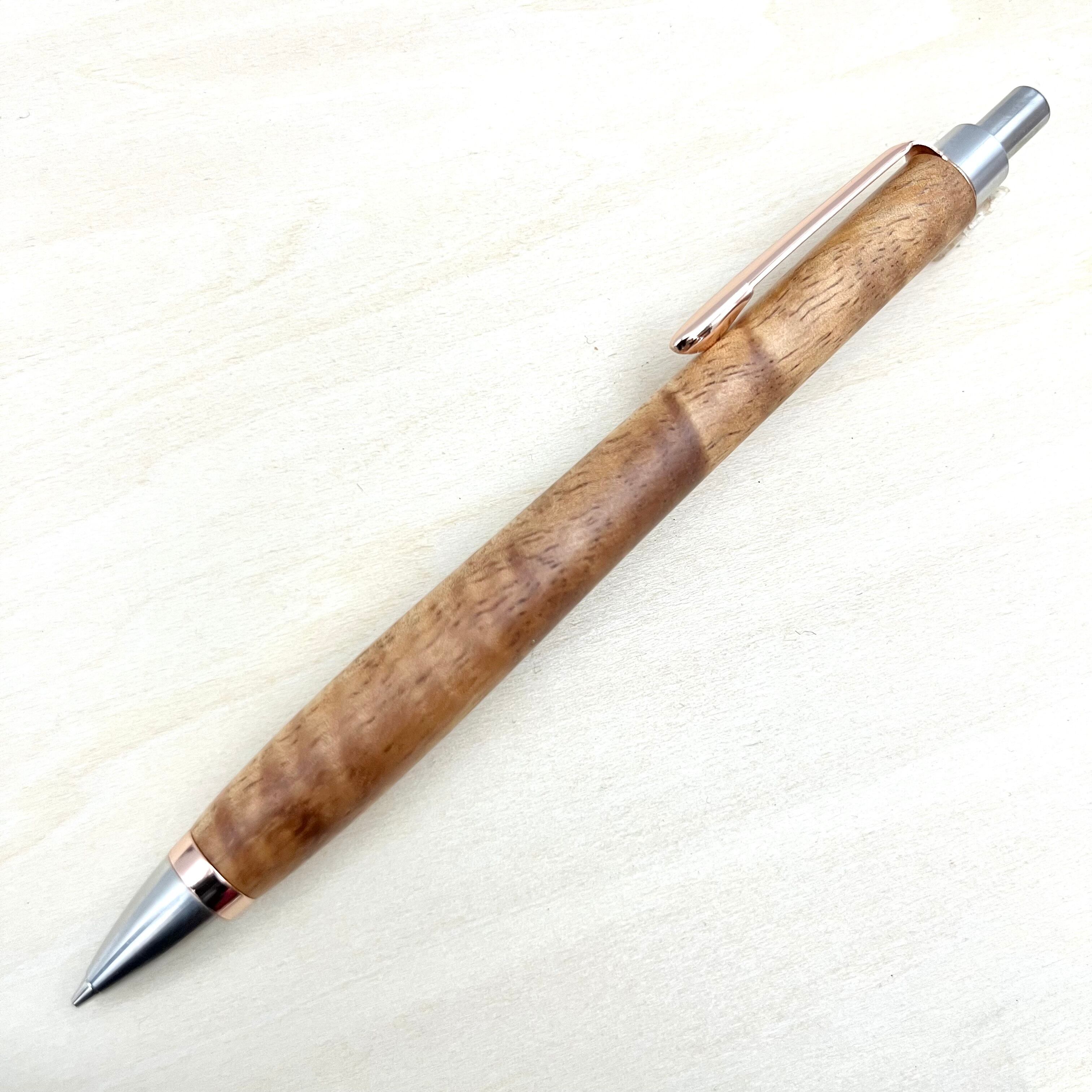 ペンシルは軸ブレが起こりにくい固定式口金を採用し、木の表情を最大限に楽しめる木軸の長さと、書き心地にこだわったバランスで金具を設計してあります。