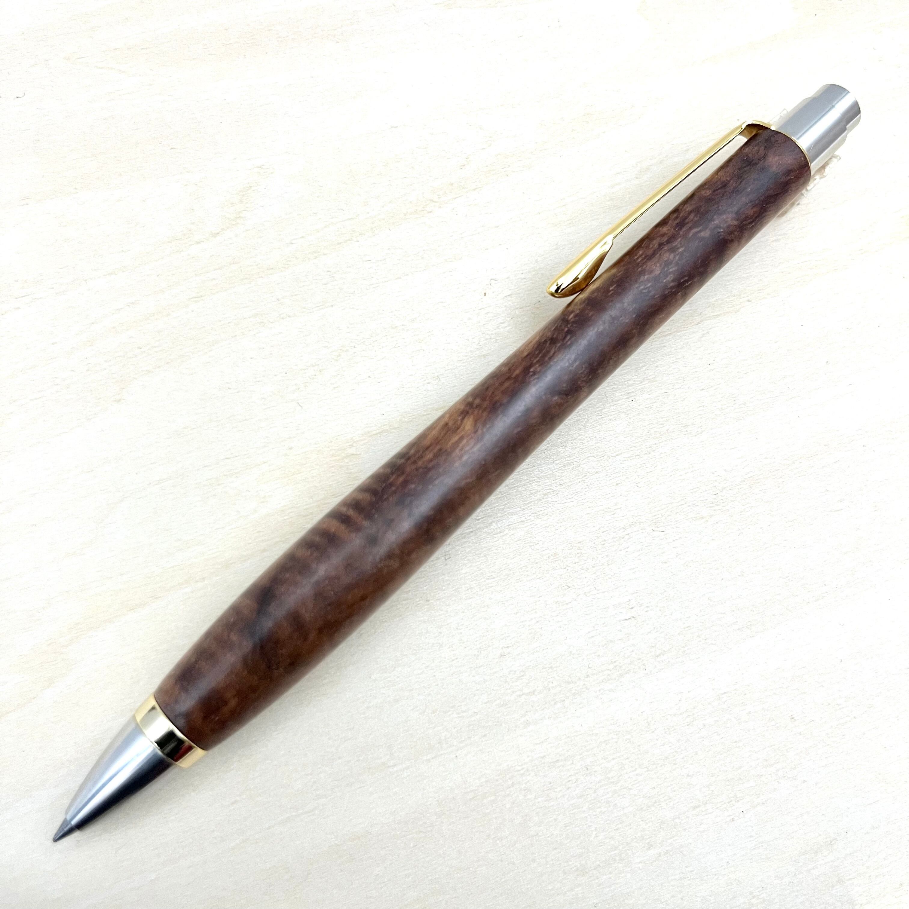 ボールペンのノックシステムは、ドイツ最高のクリックメカニズムを採用してあります。このメカニズムはユニークな機構のため、クリックしたときのカチカチ音が静かで、どんな場所でも気兼ねなく使うことができます。滑らかに動くこのプッシュ感覚を一度味わうと他には戻れなくなってしまうほどの魅力があります。 100分の1単位の加工精度で削り出されたペン先は、軸ブレも全くありません。
