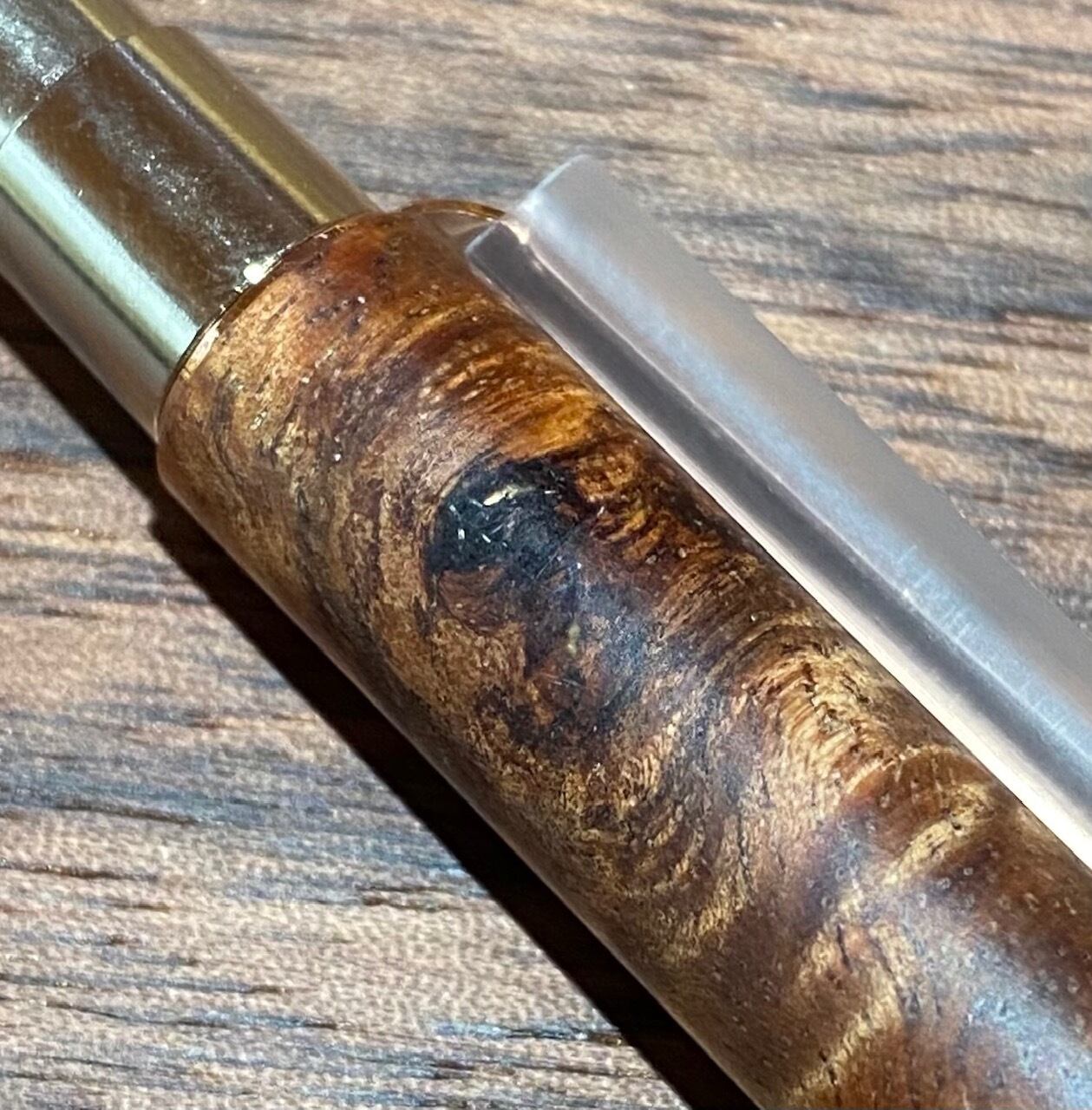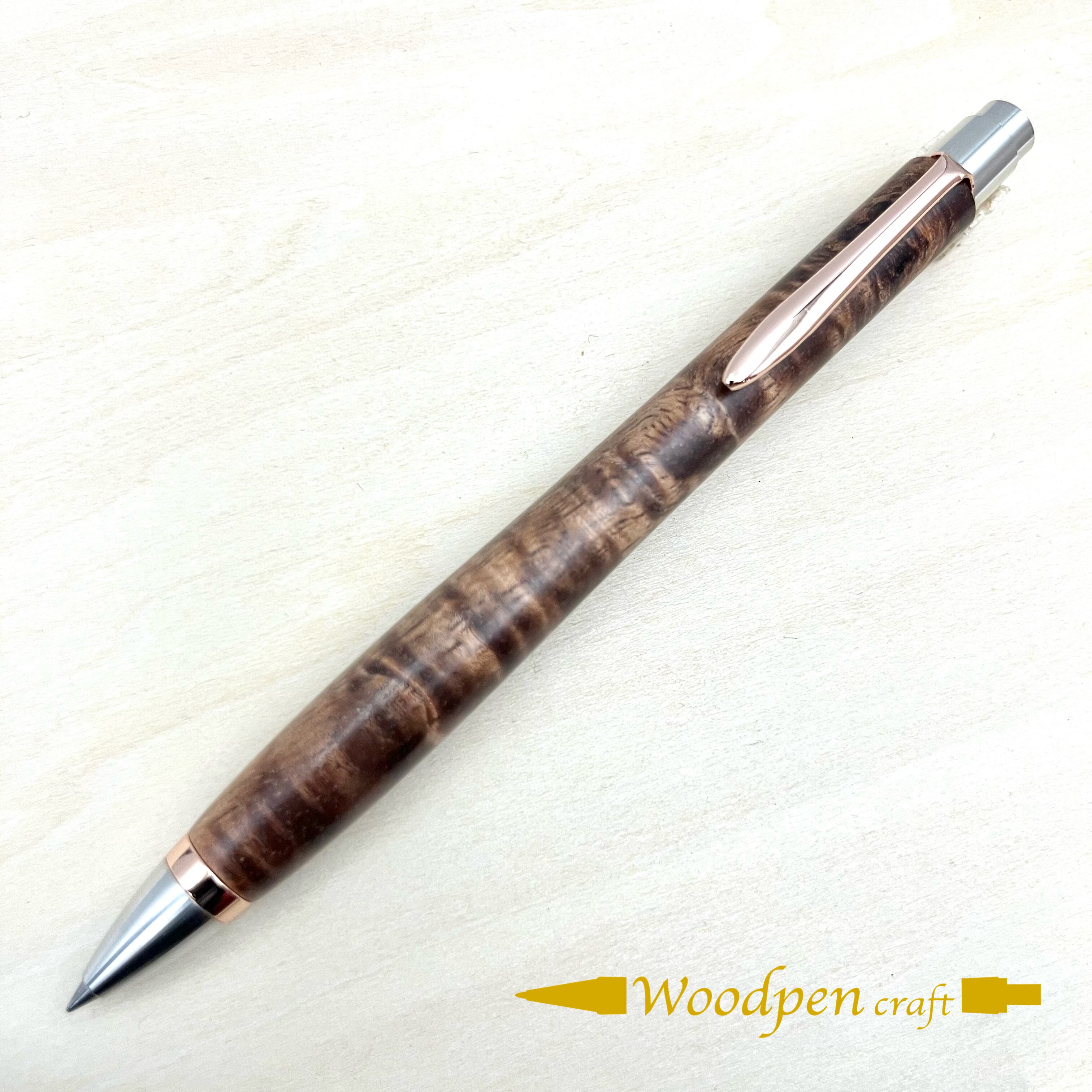 ボールペンのノックシステムは、ドイツ最高のクリックメカニズムを採用してあります。このメカニズムはユニークな機構のため、クリックしたときのカチカチ音が静かで、どんな場所でも気兼ねなく使うことができます。滑らかに動くこのプッシュ感覚を一度味わうと他には戻れなくなってしまうほどの魅力があります。 100分の1単位の加工精度で削り出されたペン先は、軸ブレも全くありません。