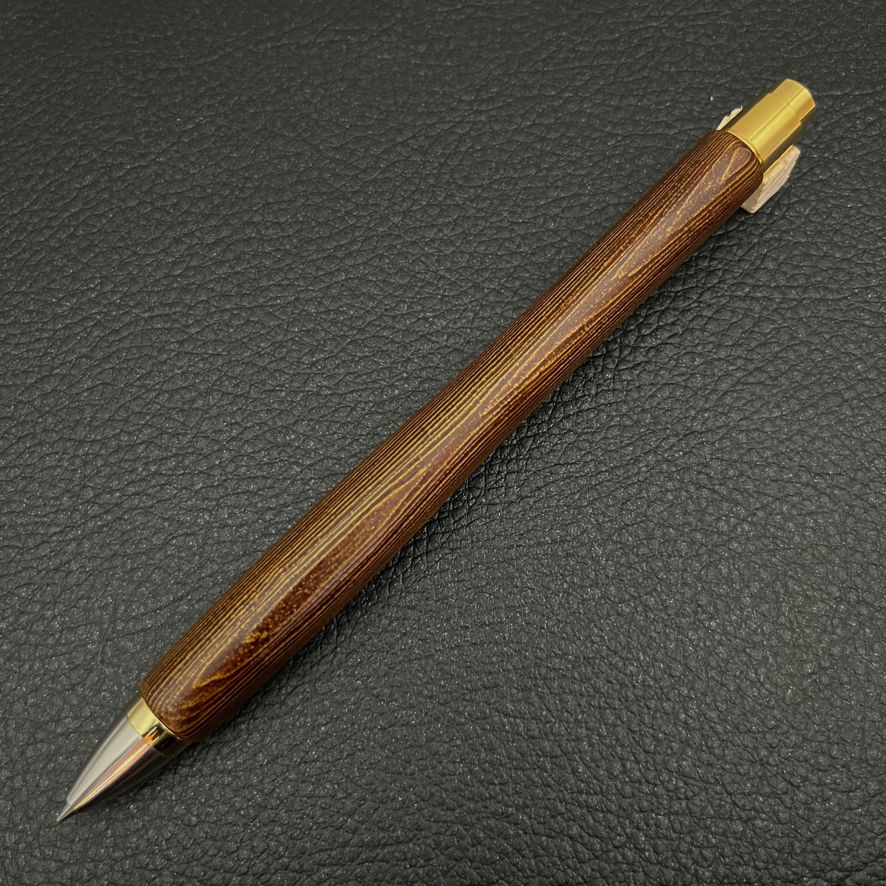 ※大阪の漆塗り職人さんの技術で浮造りした屋久杉に金粉を定着させ、国産生漆に染料を加えて金粉の発色を活かすことで、梨の肌のような仕上がりになっています。ノックは限定カラーのゴールドが付きます。このノックは、金メッキが取れますので研磨剤などでは磨かないようにして下さい。