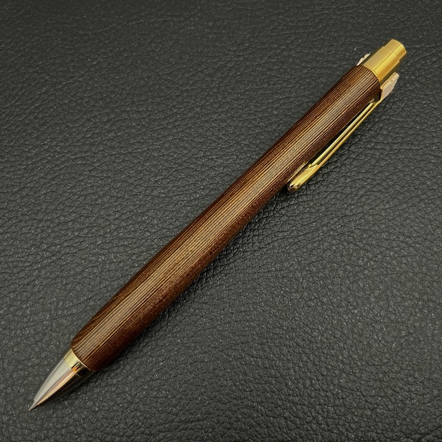 ボールペンのノックシステムは、ドイツ最高のクリックメカニズムを採用してあります。このメカニズムはユニークな機構のため、クリックしたときのカチカチ音が静かで、どんな場所でも気兼ねなく使うことができます。滑らかに動くこのプッシュ感覚を一度味わうと他には戻れなくなってしまうほどの魅力があります。 100分の1単位の加工精度で削り出されたペン先は、軸ブレも全くありません。